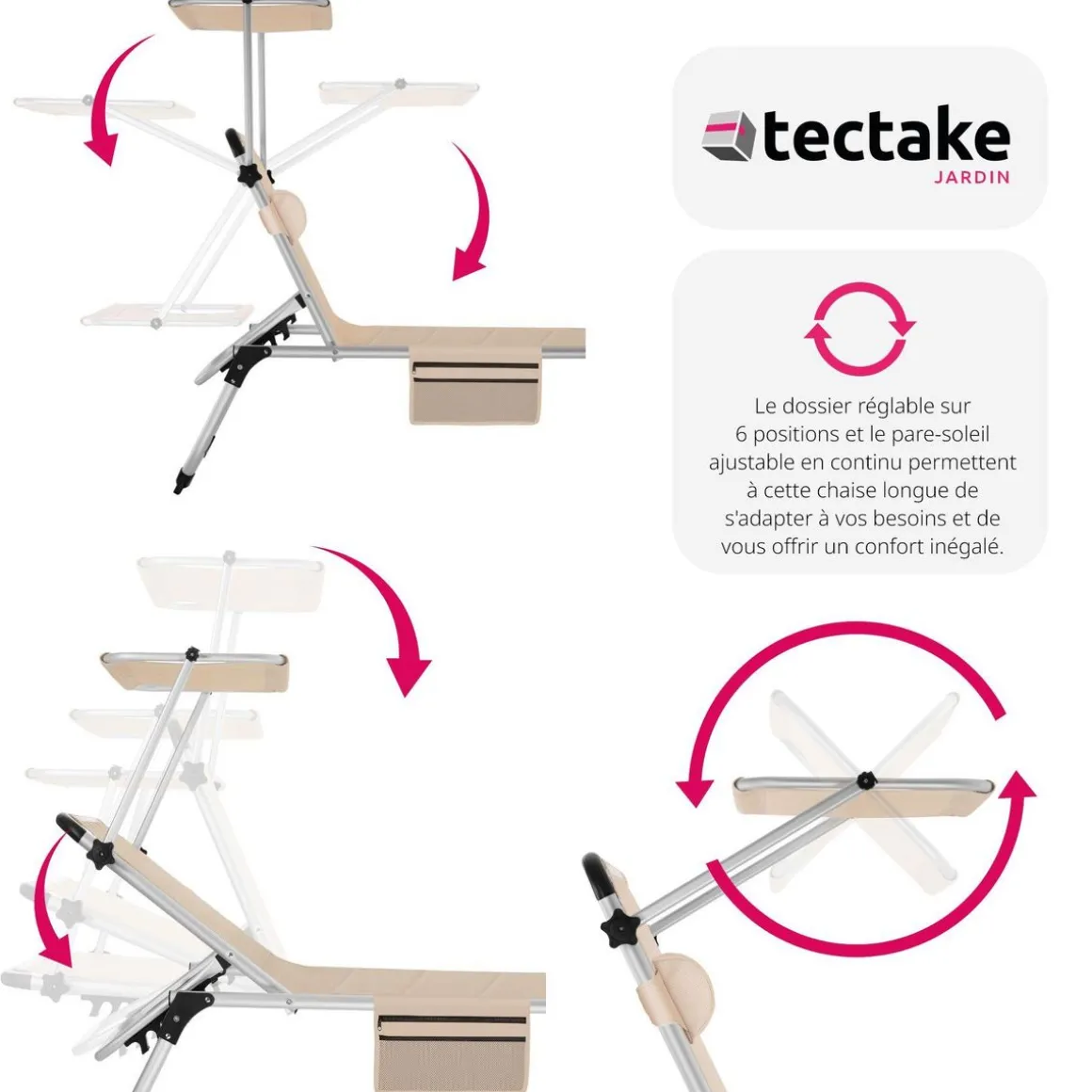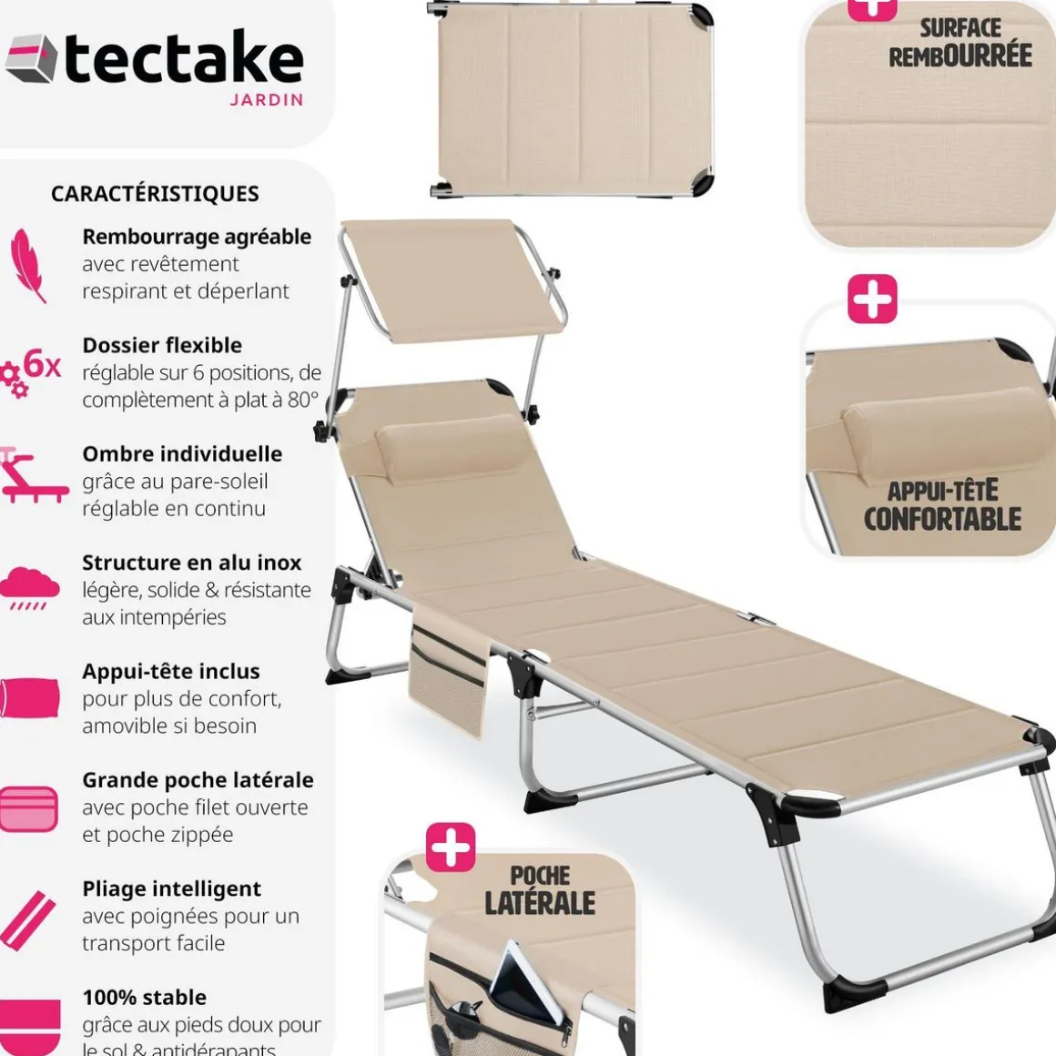 - Bain de soleil pliable confortable avec pare-soleil réglable en continu