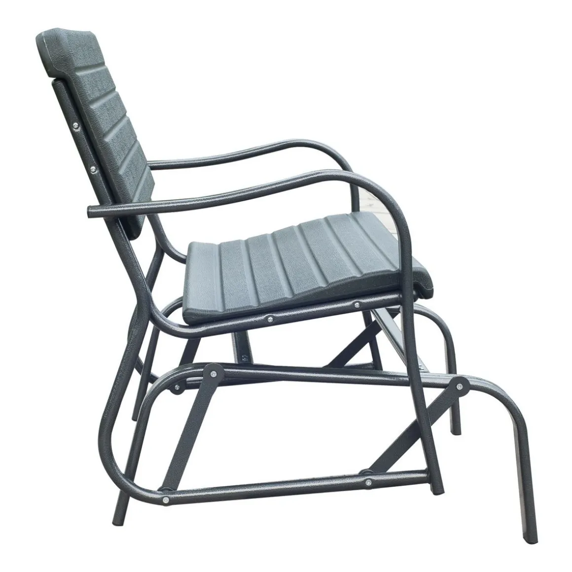 – Banc à bascule de jardin style contemporain mélant avec élégance métal époxy gris moucheté et HDPE effet grain de bois vert fougère