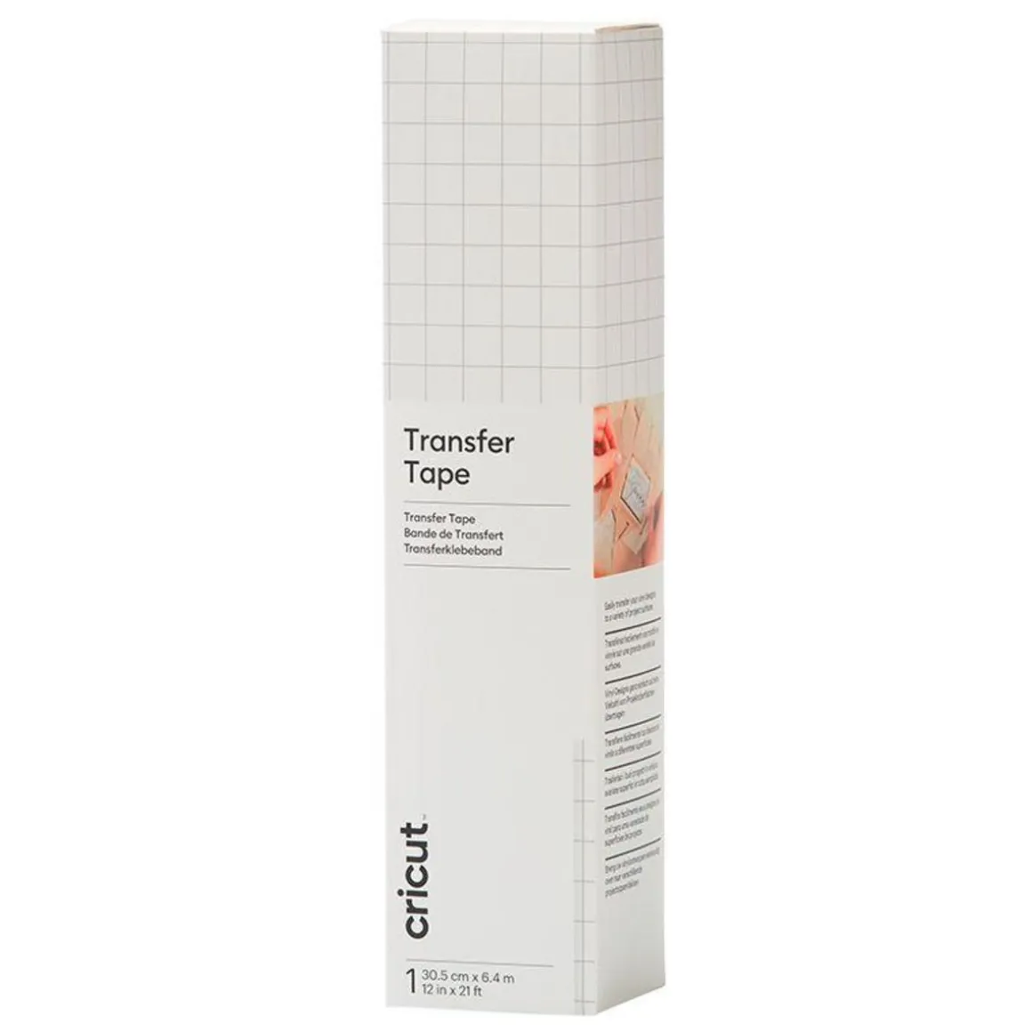 Cette bande facilitera le transfert de vos vinyles. Pour l’utiliser rien de plus simple : une fois que vous avez découpé comme souhaité votre vinyle et enlever les morceaux de coupe vous n’aurez plus qu’à mettre la bande sur votre motif ou écriture. Passez un coup dessus pour vous assurez de l’adhérence, déposez le sur la surface souhaitez puis retirer doucement la bande. Cette feuille de transfert à une adhérence standard et est idéale pour les vinyles épais ou pailletés. Compatible avec toutes les machines Cricut Explore et Maker. Pour la Maker 2 et la Explore 2 l’utilisation d’un tapis de découpe sera nécessaire. Couleur : transparent. Dimensions : 640 x 30 cm. Référence Cricut : 2008669