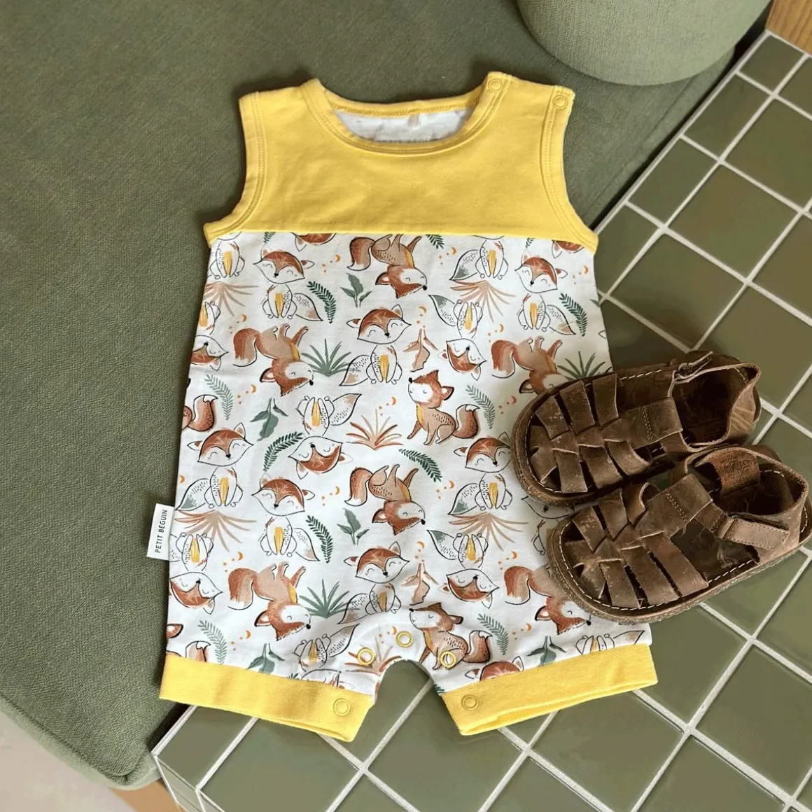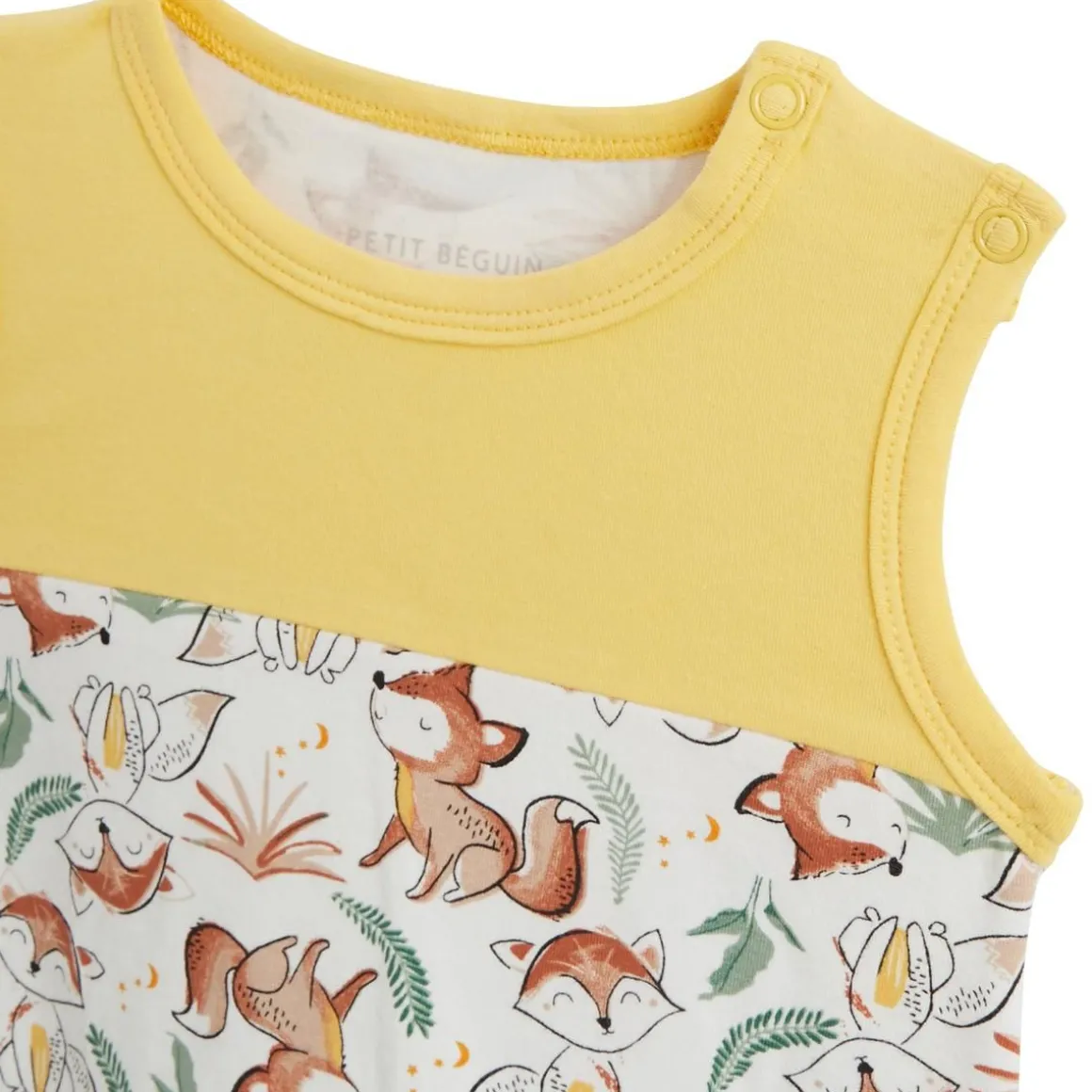 Un petit look synonyme de bon temps. Quoi de mieux qu’une barboteuse confort pour habiller vos kids pendant la saison chaude ? On adore le contraste entre la couleur ensoleillée et les imprimés à croquer. Produit labellisé STANDARD 100 by OEKO-TEX ®(2309200 CENTEXBEL) Une ouverture pressionnée à l’entrejambe et sur l’épaule pour faciliter l’habillage