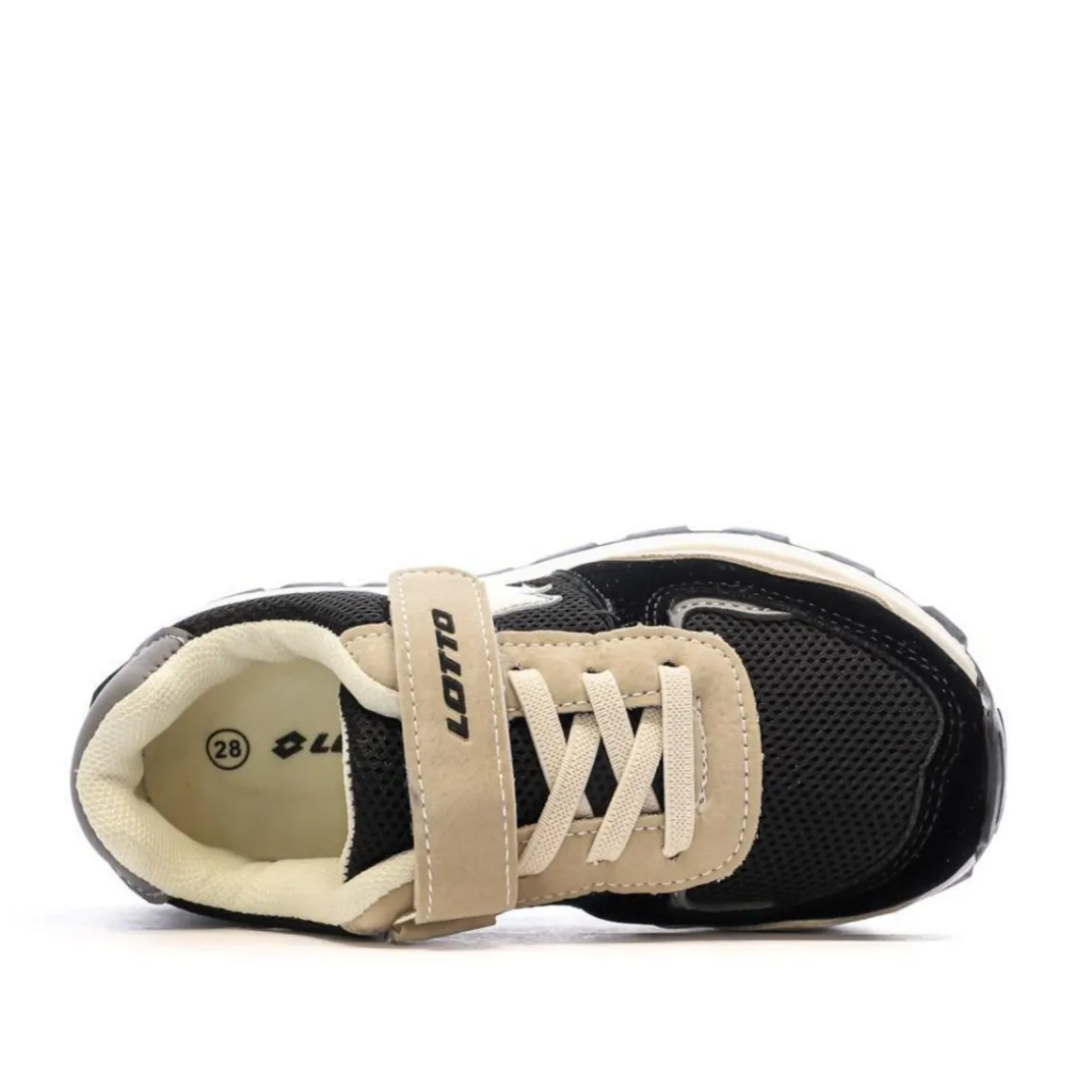 Découvrez les baskets de la marque LOTTO !Coloris : Noir/BeigeTige textile Fermeture par scratchLogo sur le flancSemelle synthétique
