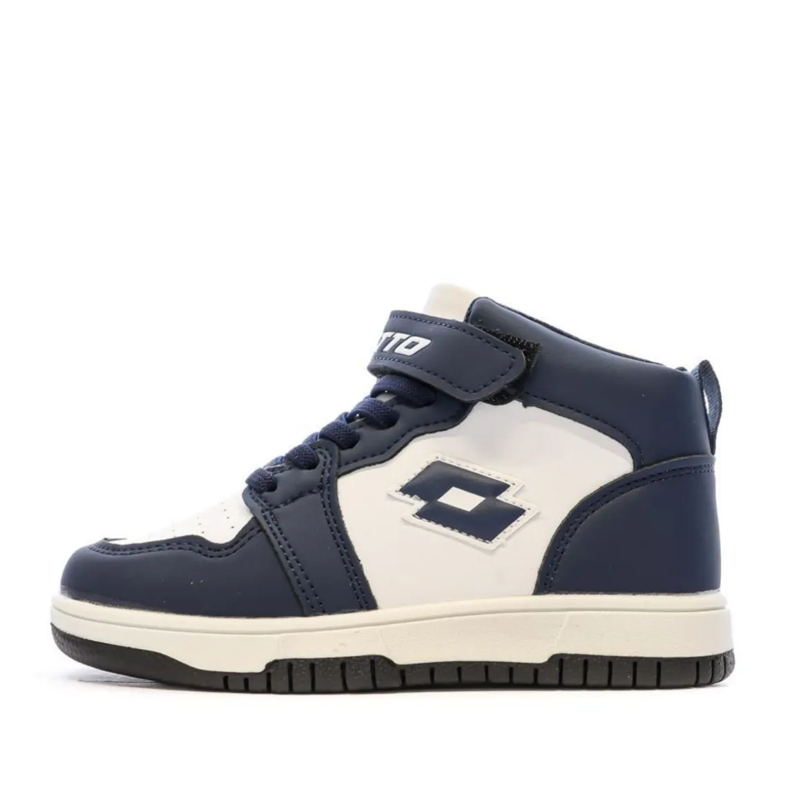 Découvrez les baskets de la marque LOTTO !Coloris : Blanc/Marine Tige synthétique Fermeture par scratch Logo sur le flanc Semelle synthétique