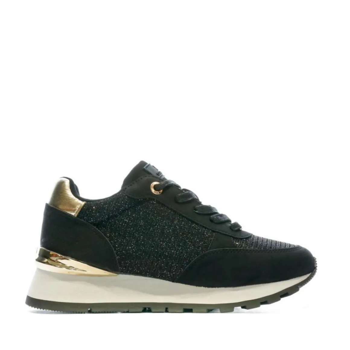 Optez pour ces baskets de la marque XTI ! Coloris : noir Chaussures basses Semelles synthétiques Tiges synthétiques Détails dorés