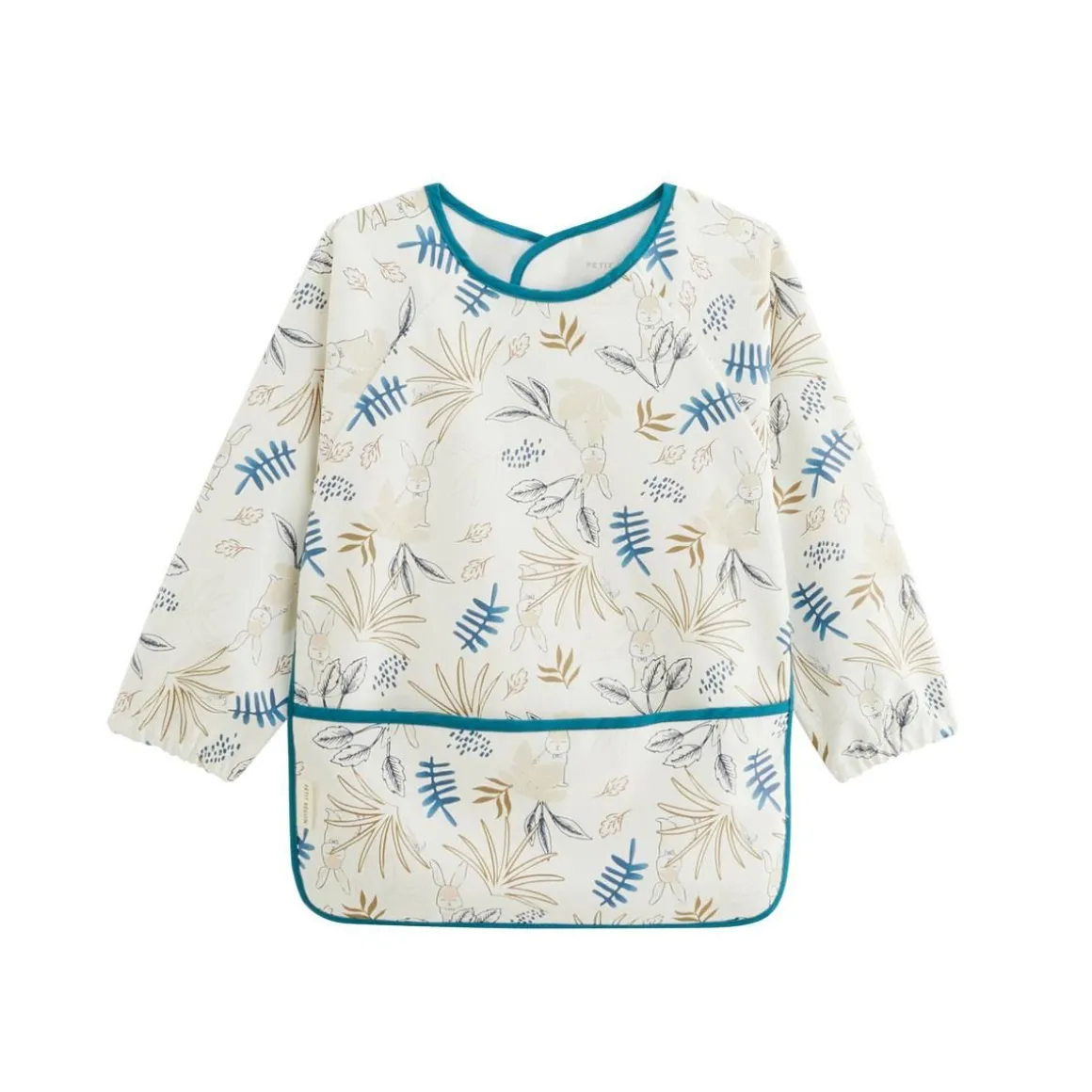 Manger sans avoir peur des tâches ! Avec ses manches longues et sa forme couvrante, ce bavoir à manches fera le plus grand bonheur des parents. Il va devenir un vrai atout lors des repas. En polyester imperméable et matière éponge à l’intérieur Fermeture facile à scratch Des élastiques aux manches pour une meilleure tenue et une poche pour les petits déchets