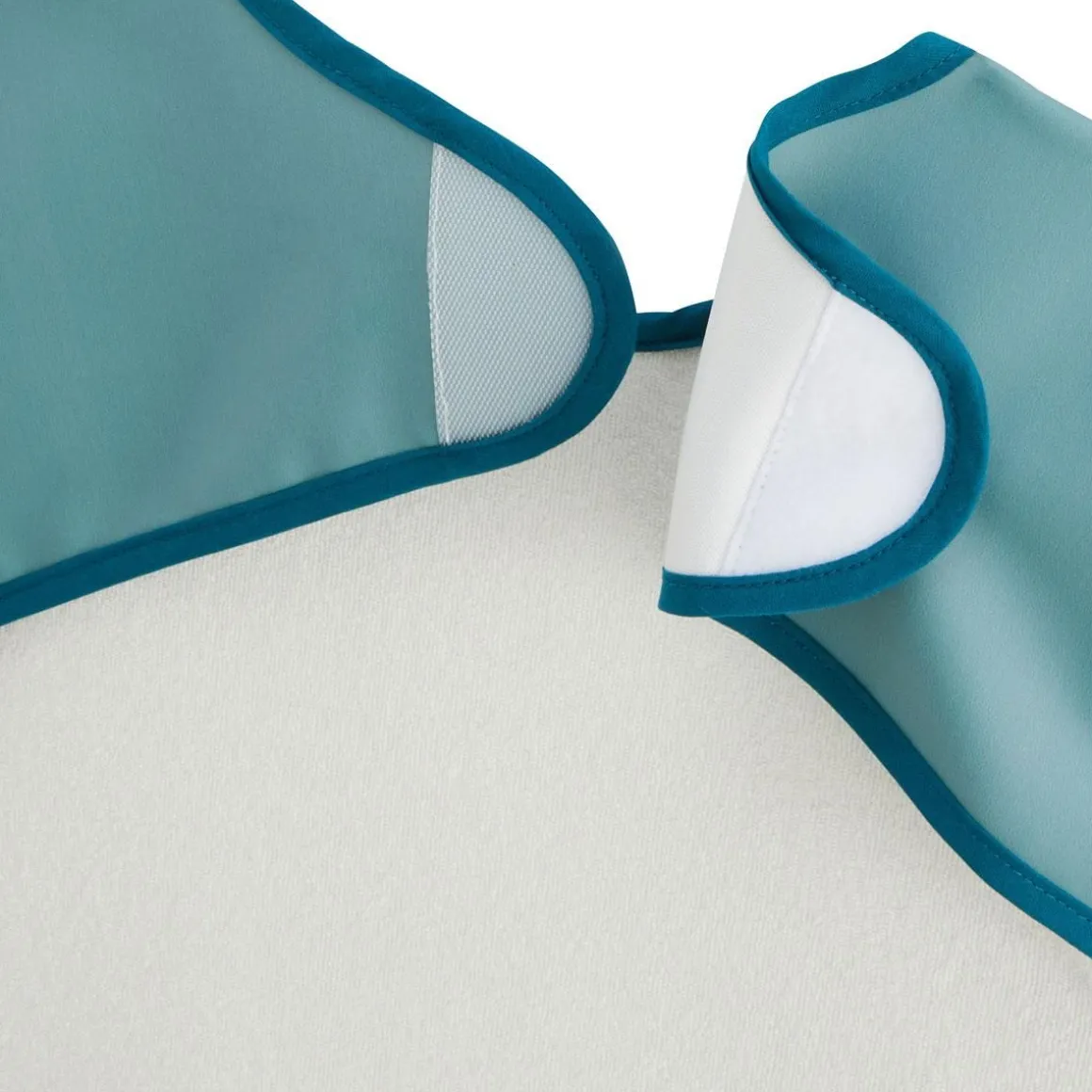 Fini les tâches ! On a pensé à vous chers parents, pour protéger bébé de toutes catastrophes. Notre bavoir à manches Roméo est LA pièce à avoir dans les essentiels pour bébé. En polyester imperméable et matière éponge à l’intérieur Fermeture facile à scratch Des élastiques aux manches pour une meilleure tenue et une poche pour les petits déchets