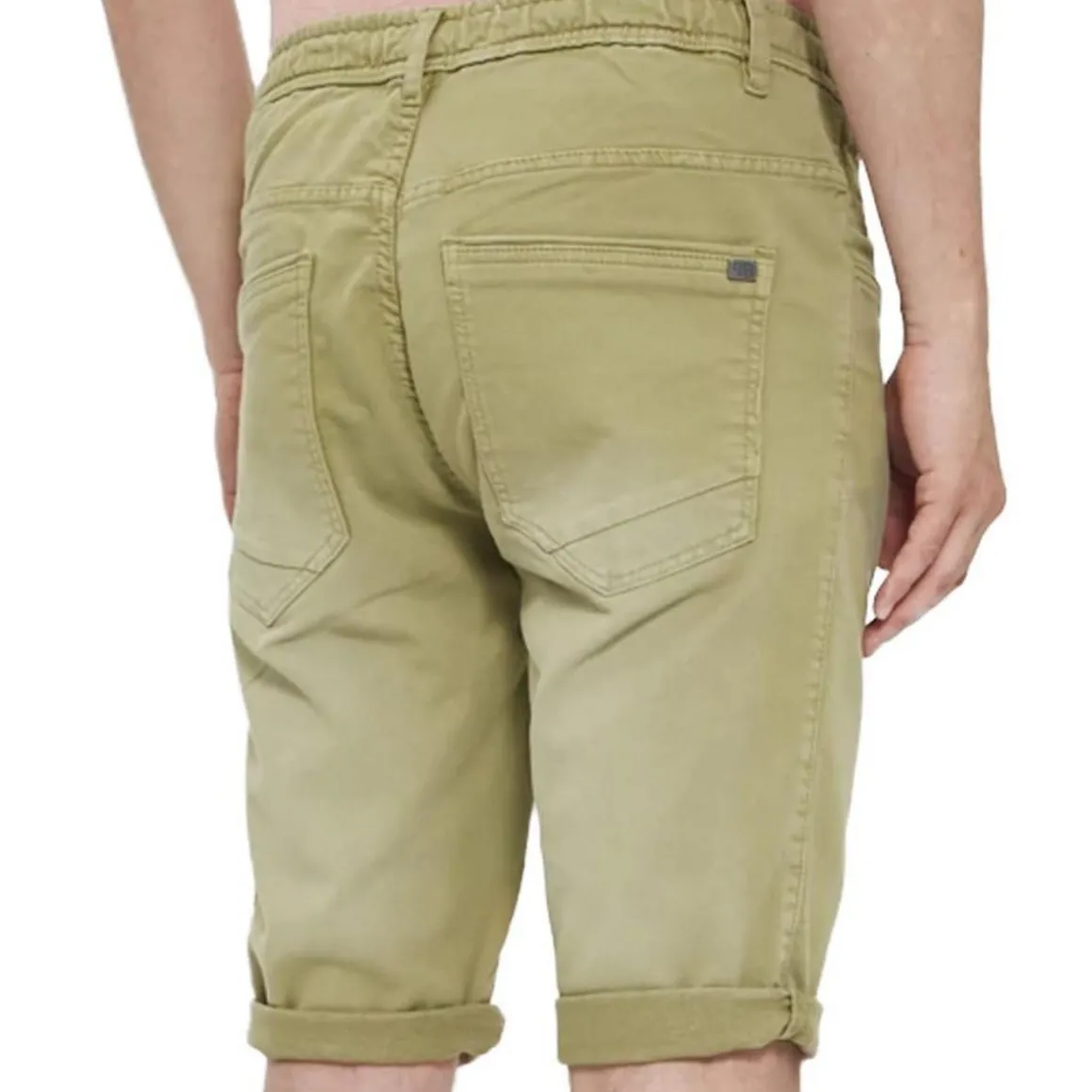Bermuda marine pour homme de la marque Paname Brothers. Coloris : Vert Elastique de maintien et cordon de serrage Trois poches avant Stretch style jogger Deux poches arrière Etiquette certifiant l’authenticité Composition : 70% Coton, 2% Polyester, 2% Elasthanne