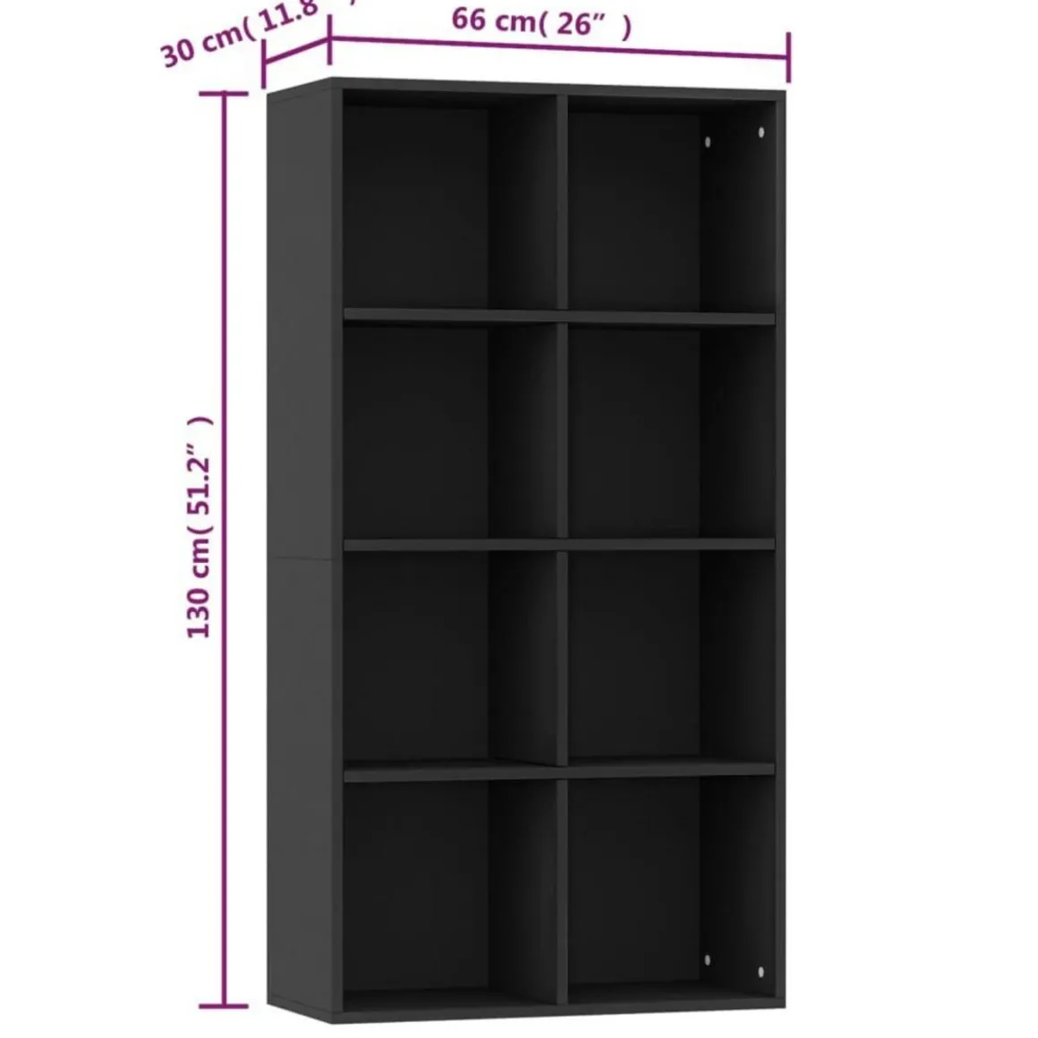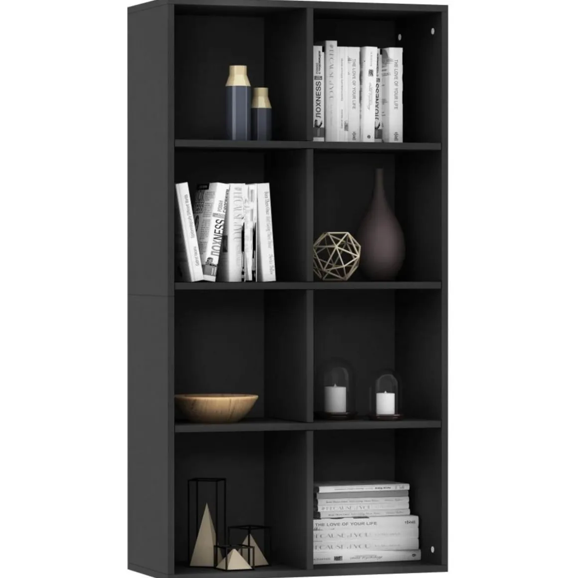 Le meuble est constitue de bois d’ingenierie, ce qui lui assure solidite, durabilite et longevite. Conçue avec 8 compartiments, la bibliotheque offre un grand espace de stockage pour garder vos magazines, livres, DVD et appareils multimedia bien organises et a portee de main. En outre, en tant qu’etagere polyvalente, le porte-livre peut egalement etre place horizontalement comme buffet, ce qui en fait le choix ideal pour votre espace de vie.