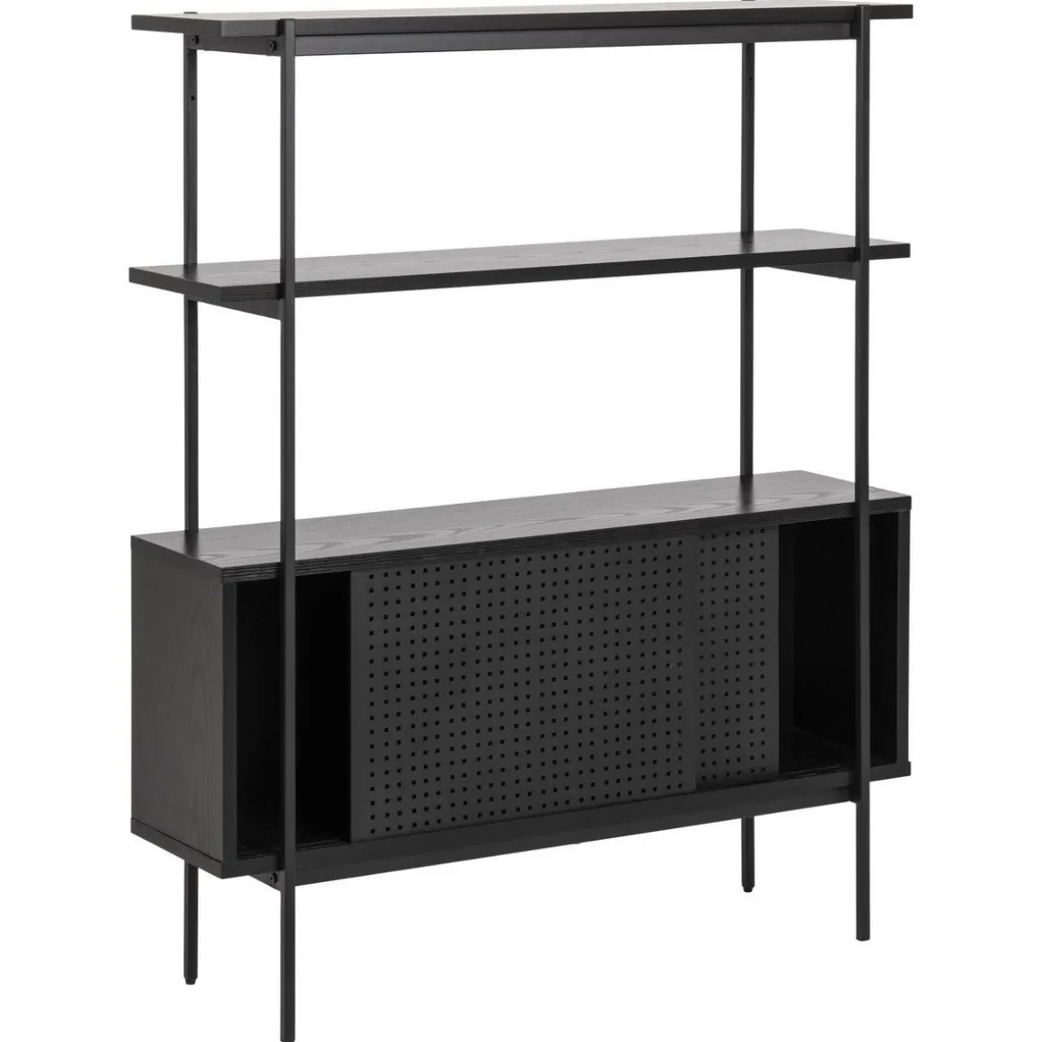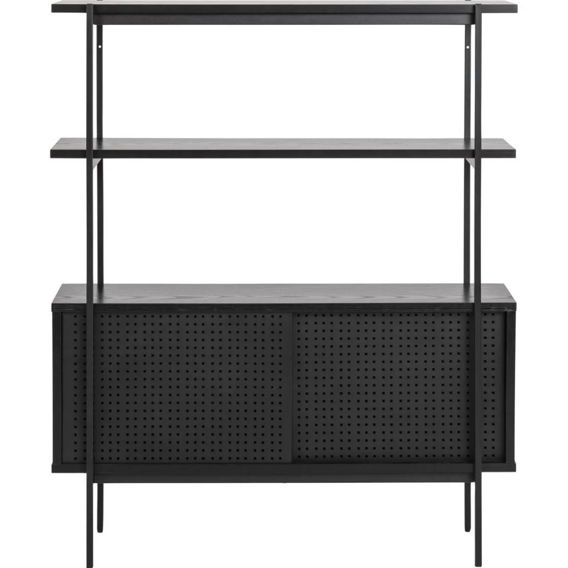 – Détails : 2 étagères et 2 niches de rangement fermées par 2 portes coulissantes.