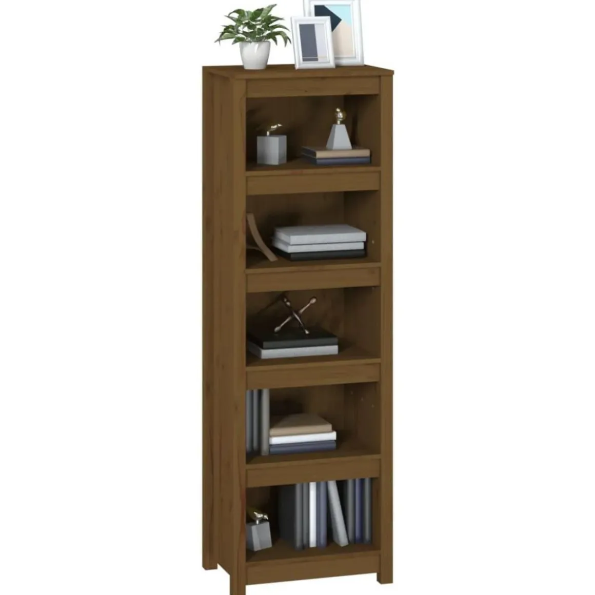Cette bibliotheque altique en bois presente un design elegant et moderne, ce qui en fait un supplement attrayant et pratique a votre decor existant.