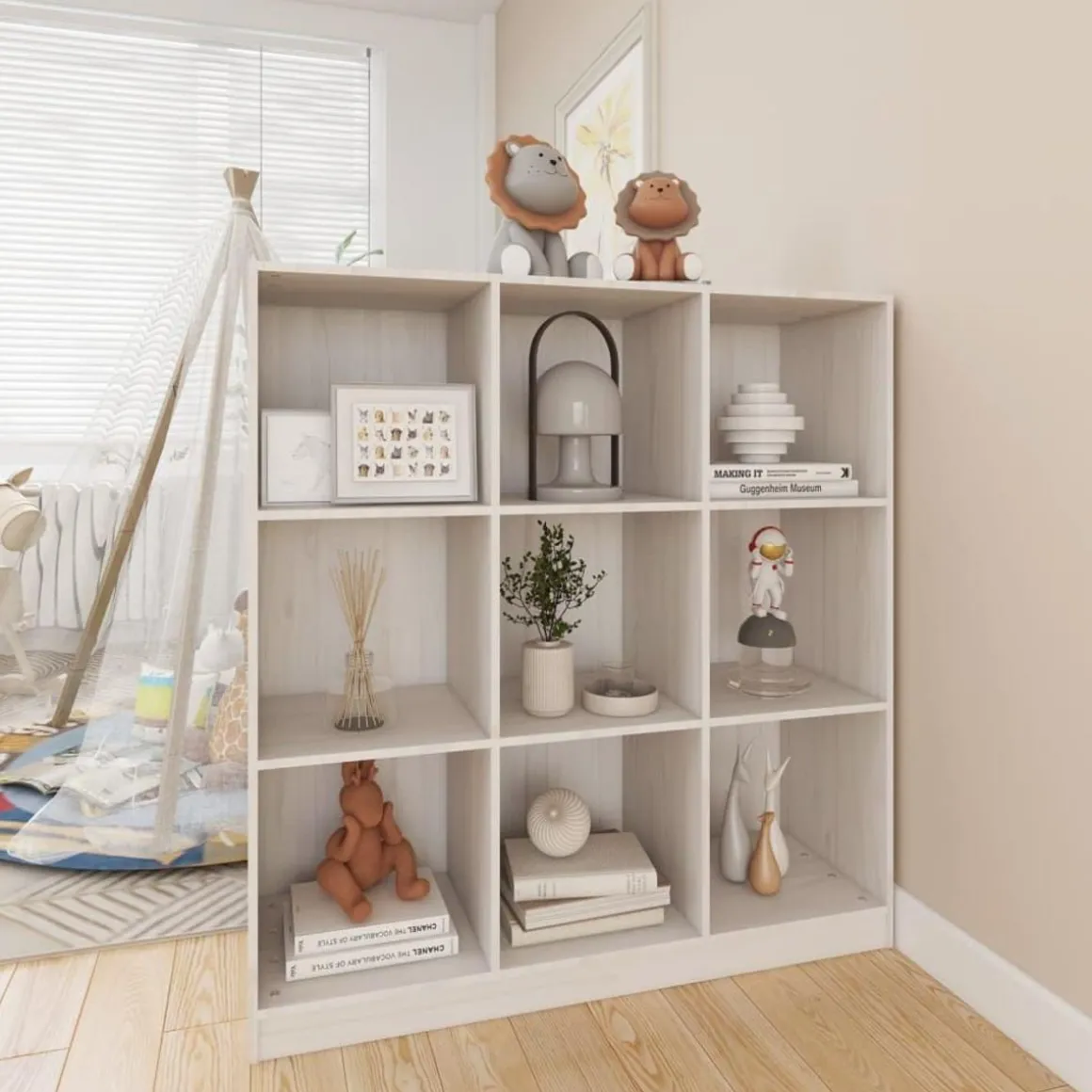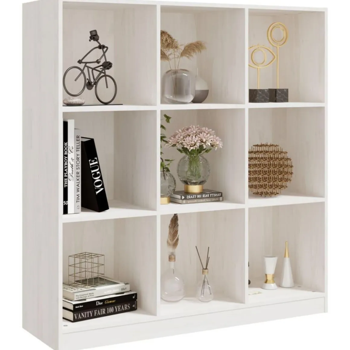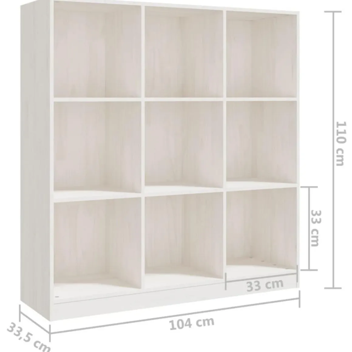 Le porte-livres est en bois de pin massif, ce qui le rend robuste et stable. Conçue avec 9 compartiments spacieux, la bibliotheque offre un grand espace de rangement pour garder vos magazines, livres, DVD, appareils multimedias et autres objets decoratifs bien organises et a portee de main. De plus, en tant qu’etagere polyvalente, elle peut egalement servir de cloison de separation, ce qui en fait un choix parfait pour votre couloir et tout autre espace de vie. Le porte-livres est facile a nettoyer avec un chiffon humide.