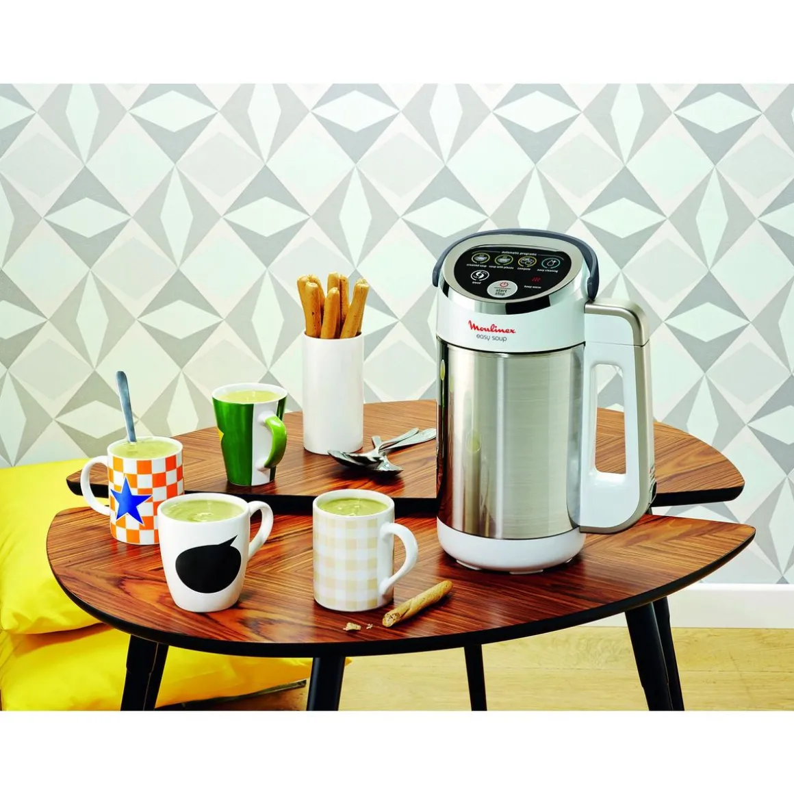 La soupe maison est un plat qui plaît à tout le monde ! Avec Easy Soup de Moulinex, préparer de la soupe devient plus facile que jamais. Nous avons pensé à tout pour qu’une délicieuse soupe maison devienne un jeu d’enfant : une machine 1,2 L facile à utiliser qui mixe et cuit à la perfection en seulement deux pressions sur un bouton, quatre programmes de cuisson polyvalents, des fonctions pratiques et des commandes simples.