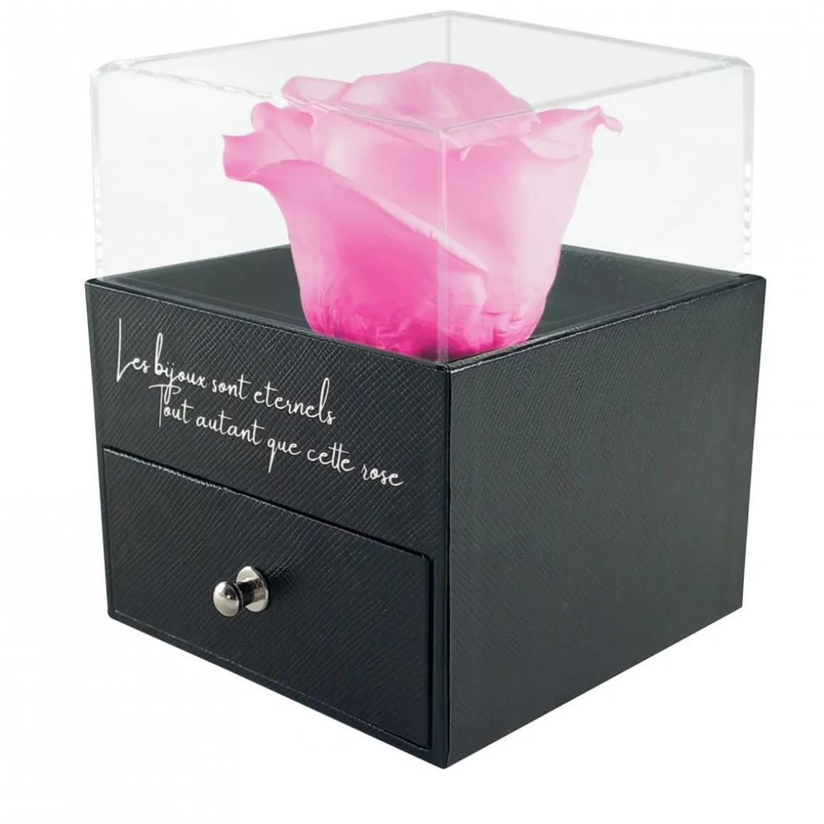 Ce coffret à bijoux avec une rose éternelle stabilisée est une œuvre artistique qui rend les cadeaux absolument uniques et magnifiques.