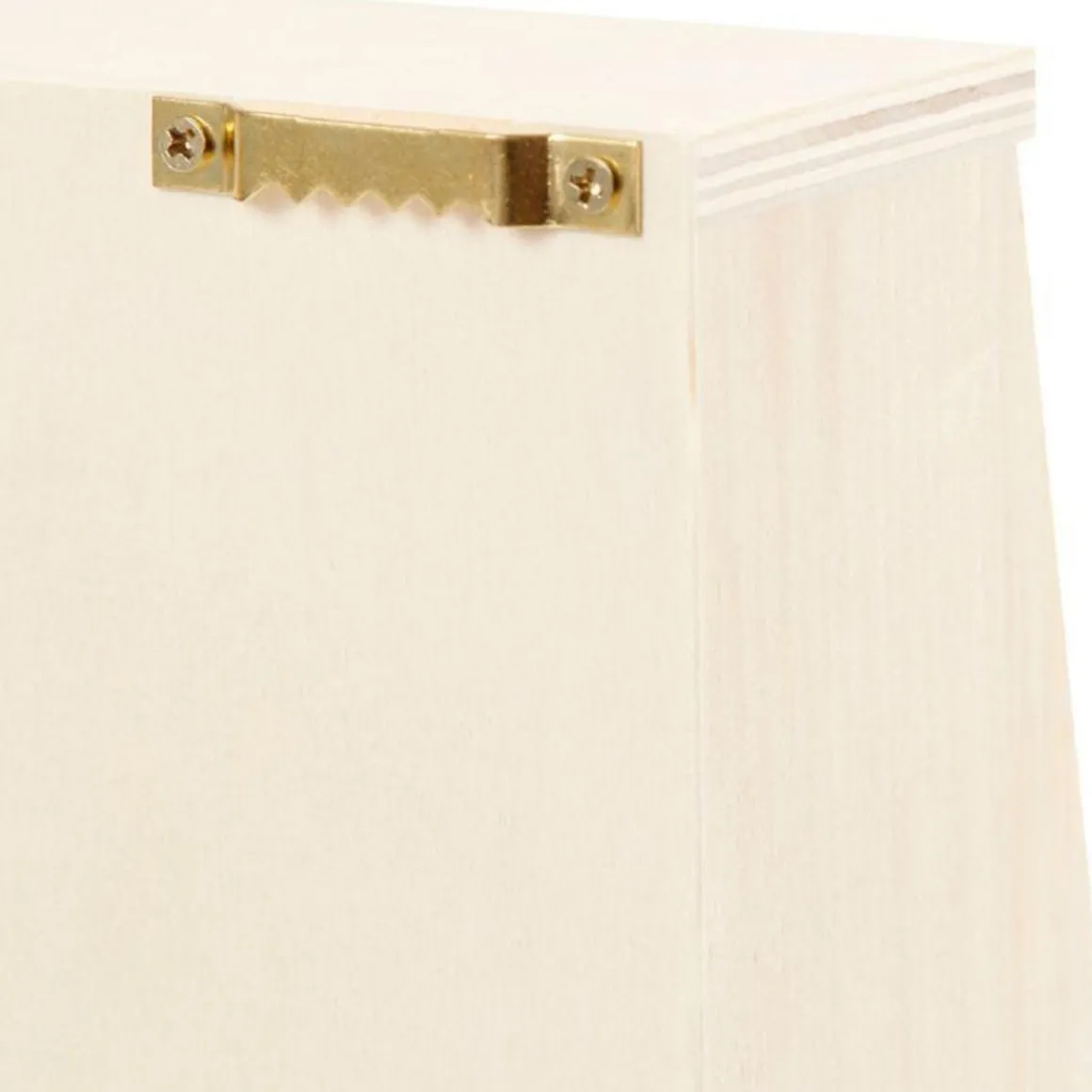 Coffre à clés en bois de la marque Creotime. Cette petite boîte en bois clair est idéale pour mettre dans une entrée ou dans une chambre comme porte bijoux. Peignez-la avec de la peinture acrylique, collez du papier patch, ajoutez des paillettes. Aussi, amusez-vous avec de la pyrogravure. Faites voyager votre créativité. Dimensions : 28,5 x 8 cm x 22 cm