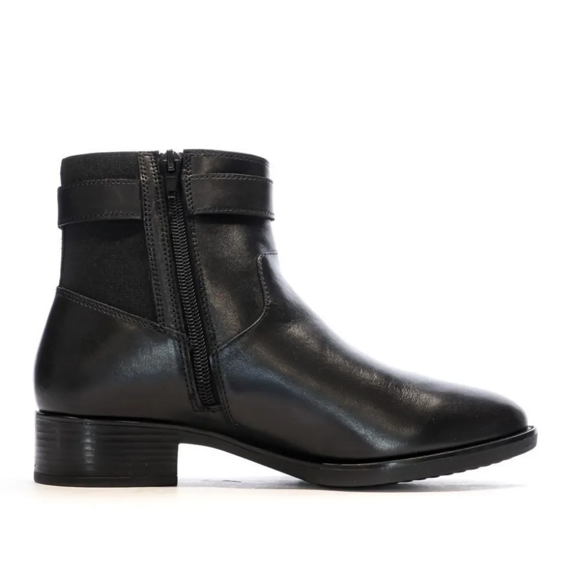 Optez pour ces bottines Geox Coloris : NoirSemelle de propreté : Simili cuirIntérieur : Tissu, Simili cuirTige : Cuir – Cuir pleine fleur, Textile/-TissuRembourrage : RigideSemelle d’usure : Matière synthétique de haute qualitéCouleur indiquée par le fabricant : BlackType de fermeture : ÉclairType de bout : RondType de semelle : Plat