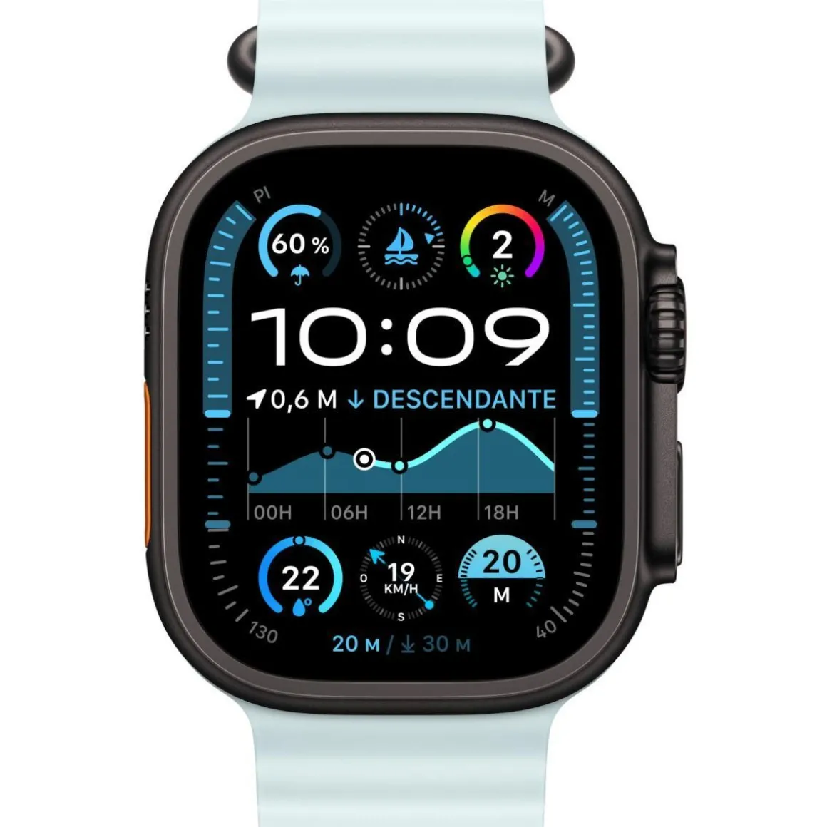 Bracelet 49mm Océan bleu glacier – Titane noir