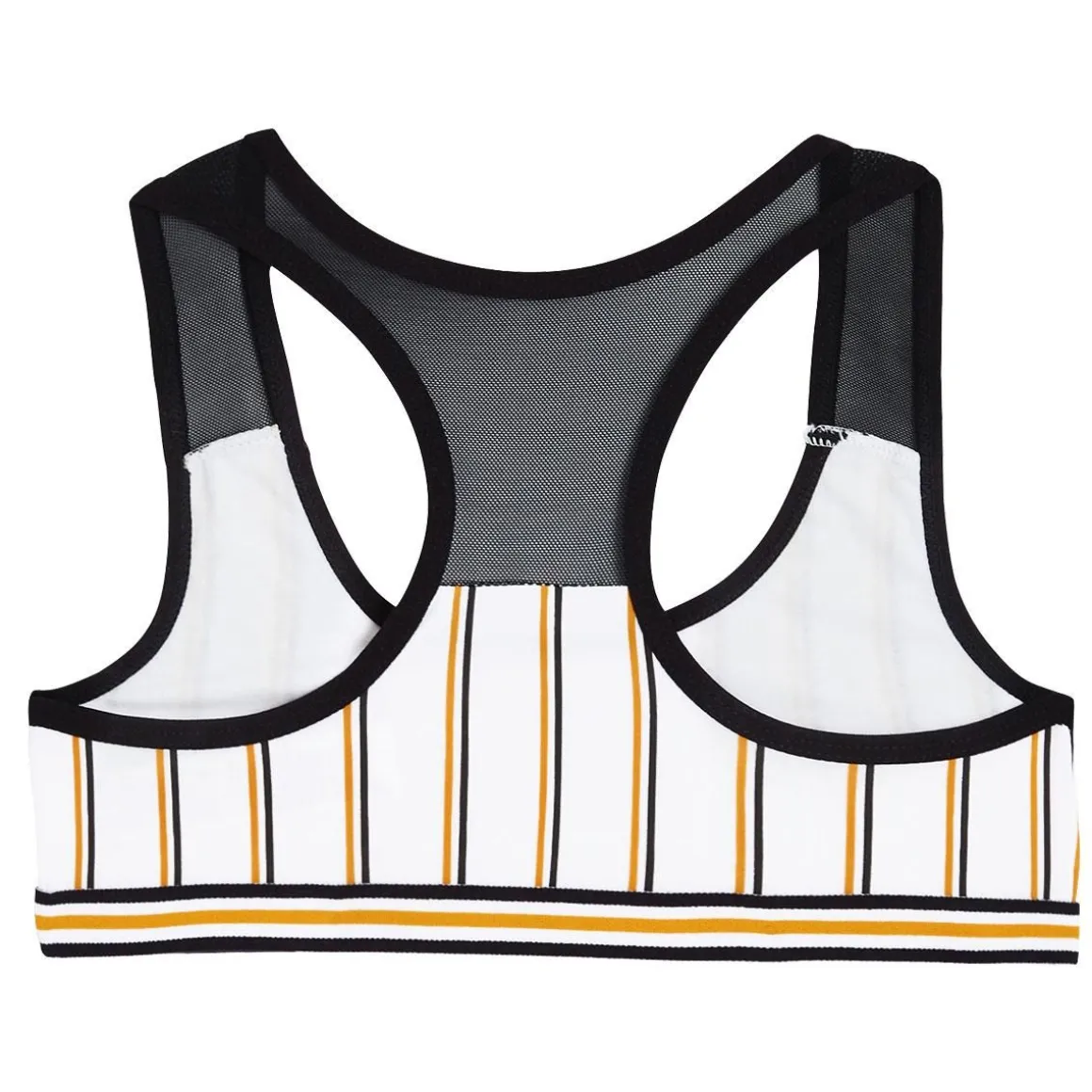 GIRL POWER : Notre best de la saison ! On adore l’imprimé rayures de cette brassière ainsi que sa forme et son look sportswear. Le petit + tendance ? Le tulle sur les épaules et dans le dos. Un élastique trop stylé ! Un jeu de transparence au dos