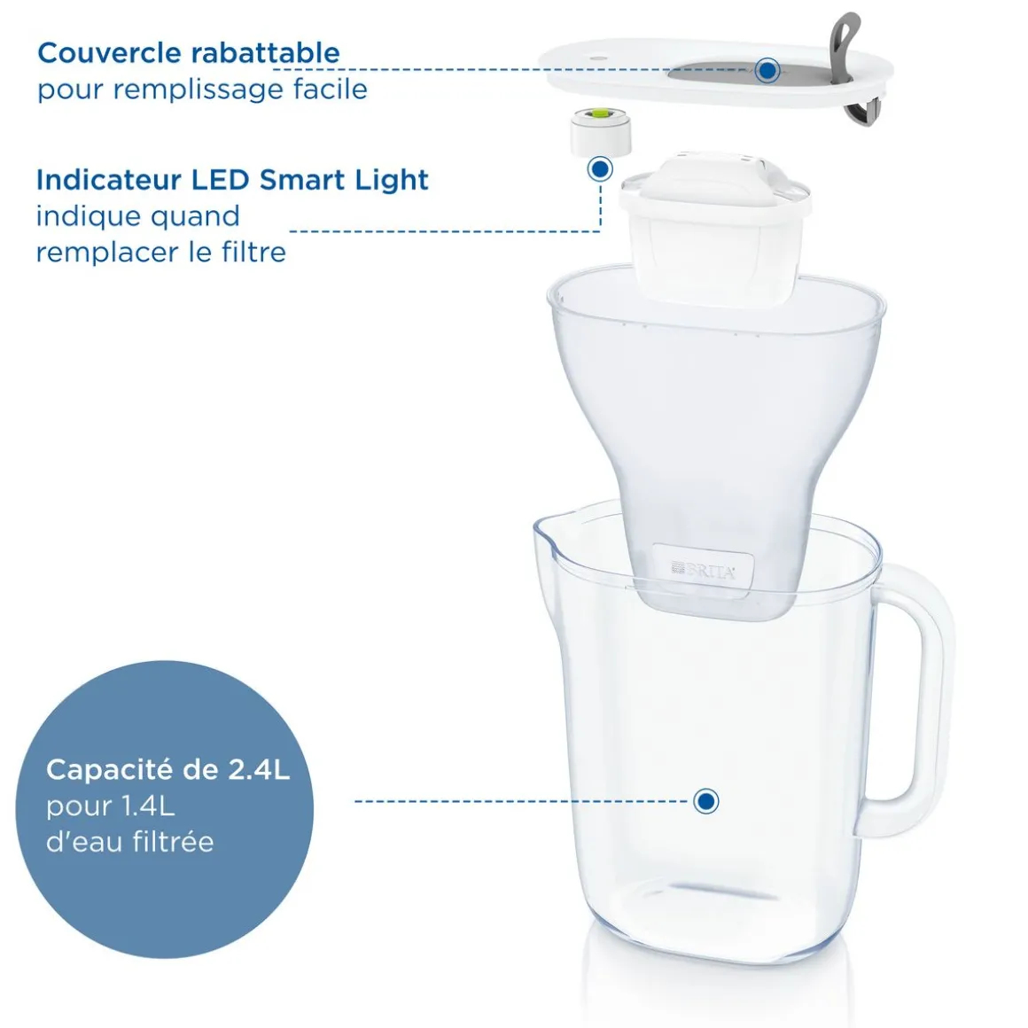 BRITA Carafe filtrante Style grise (2,4L) inclus 1 cartouche filtrante MAXTRA PRO All-in-1