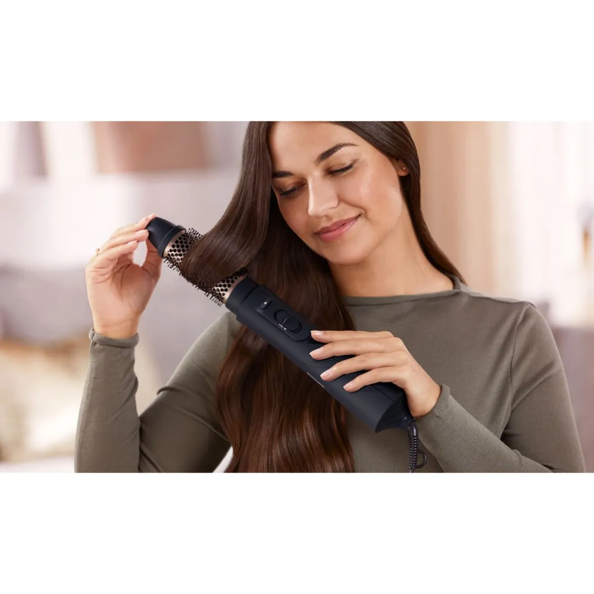 L’anneau de suspension intégré facilite le rangement et permet d’avoir la brosse soufflante à portée de main. La touche air froid est idéale pour fixer votre coiffure et lui donner une tenue durable.