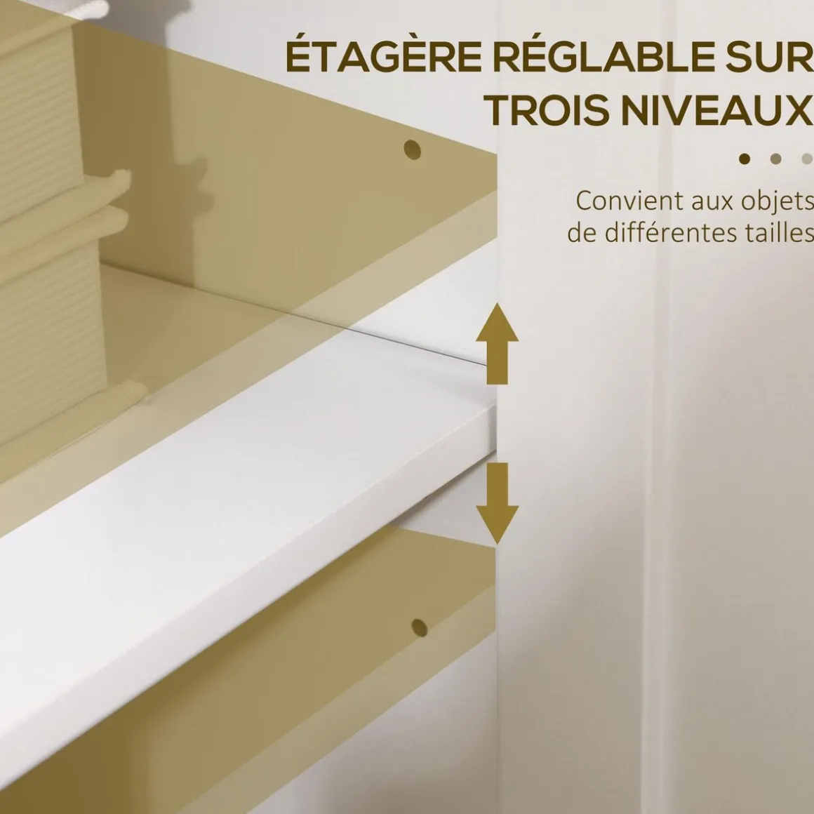 – Nombreux espaces de rangements : placard 2 portes, placard une porte (chacun avec étagère réglable en hauteur), plateau