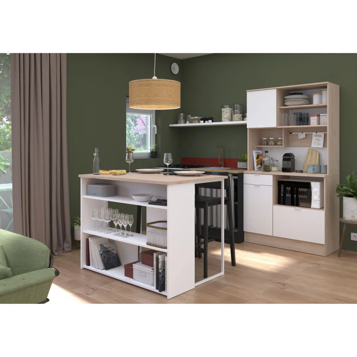 Buffet de cuisine avec nombreux rangements L100cm FEED