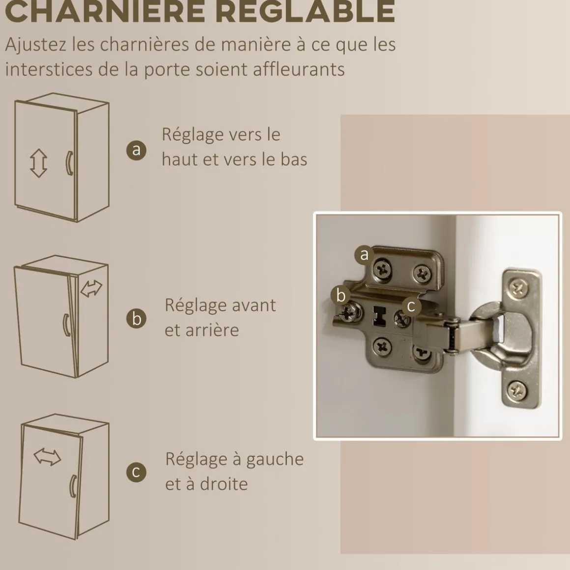 – Multi-rangement : 2 placards 2 portes avec étagère réglable en hauteur à 3 niveaux,placard 1 porte, tiroir, 3 niches