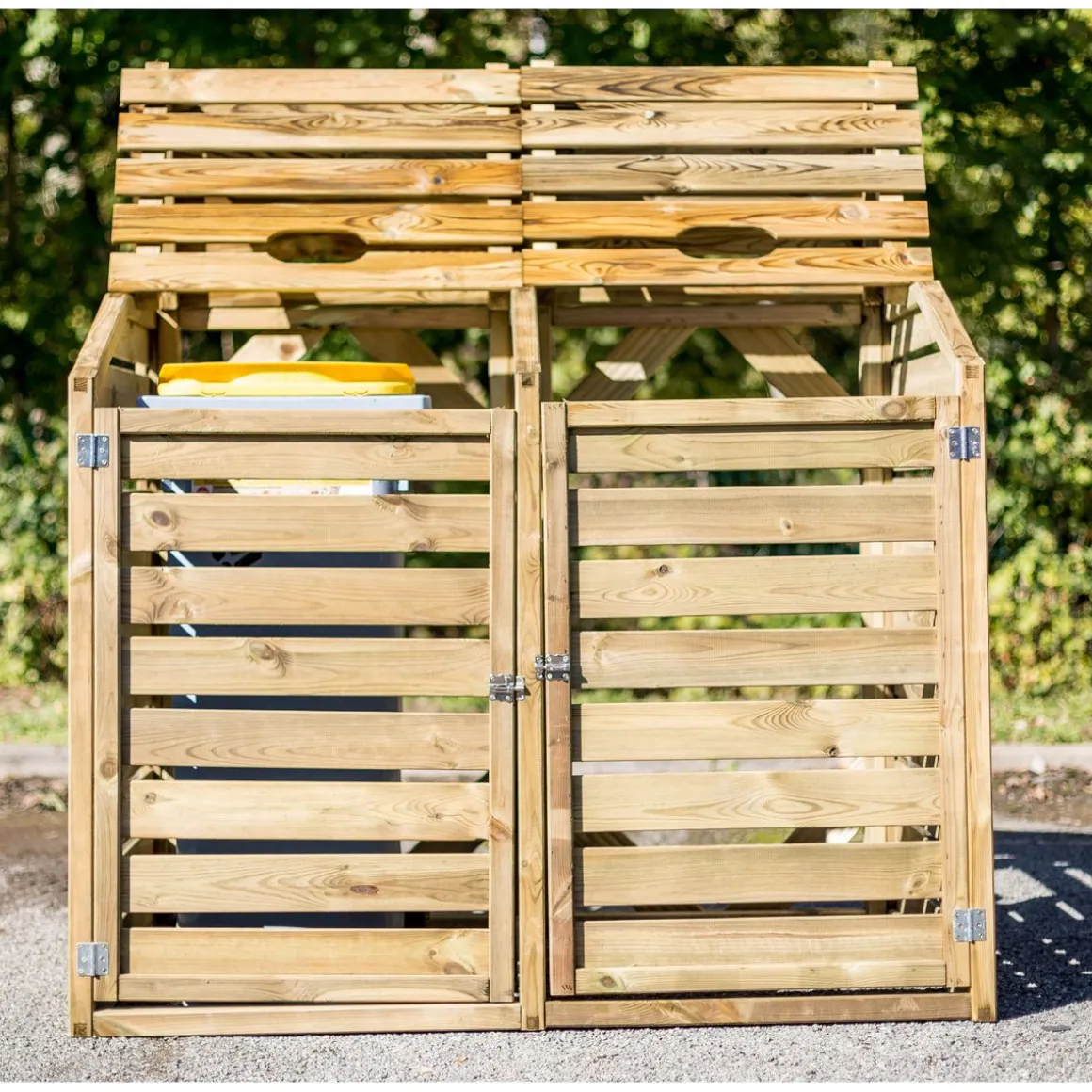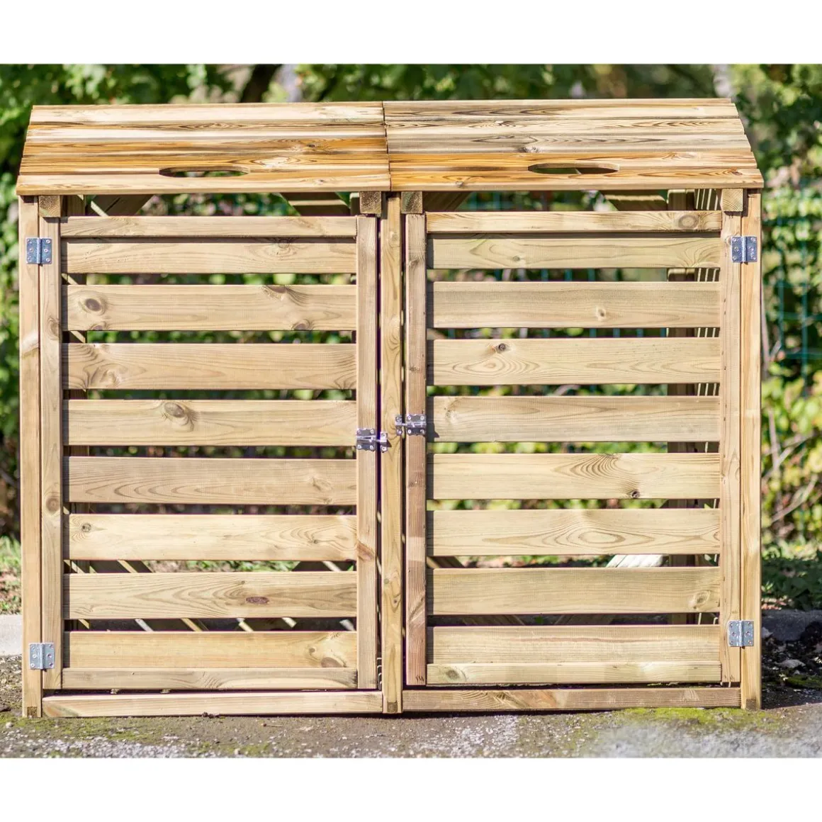 Cache poubelle bois autoclavé double / dimensions : 150 x 90 x 120 cm / Fabriqué en EUROPE