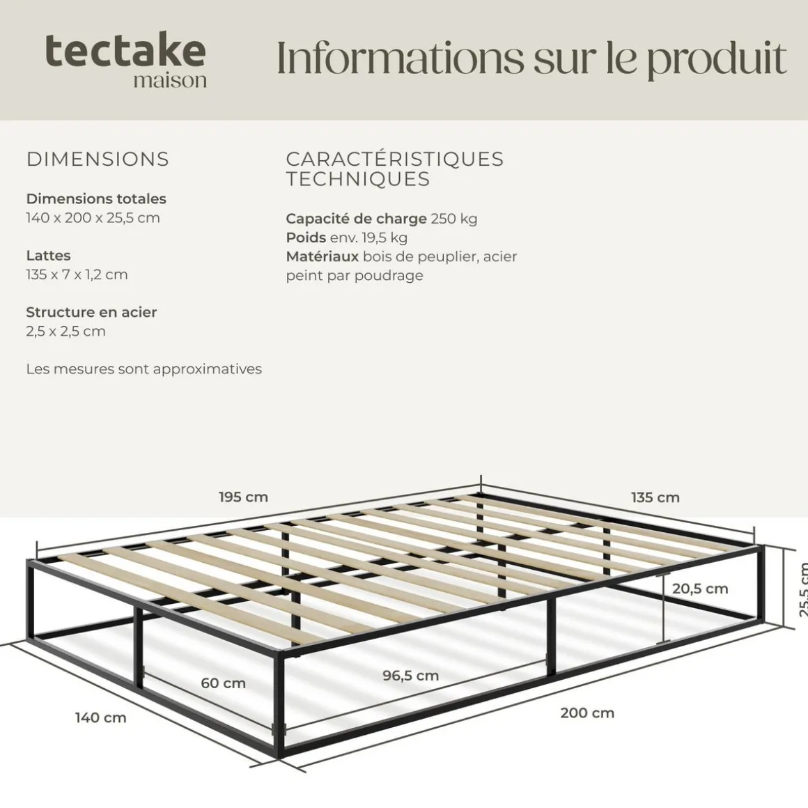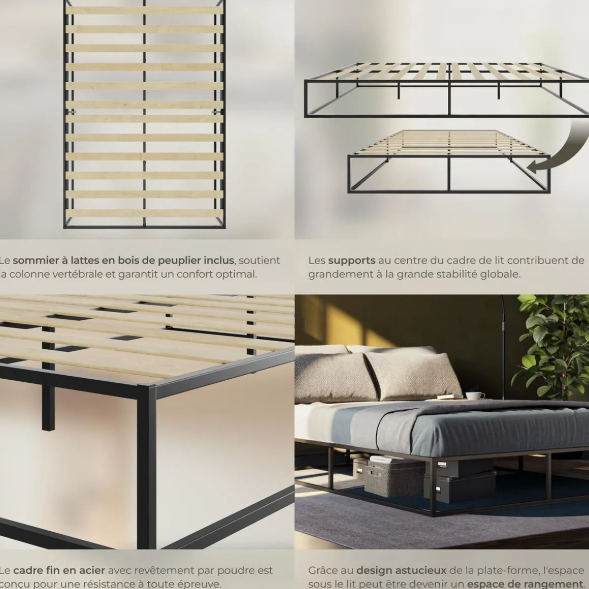 - Inclus un sommier à lattes en bois de peuplier pour un soutien optimal de la colonne vertébrale
