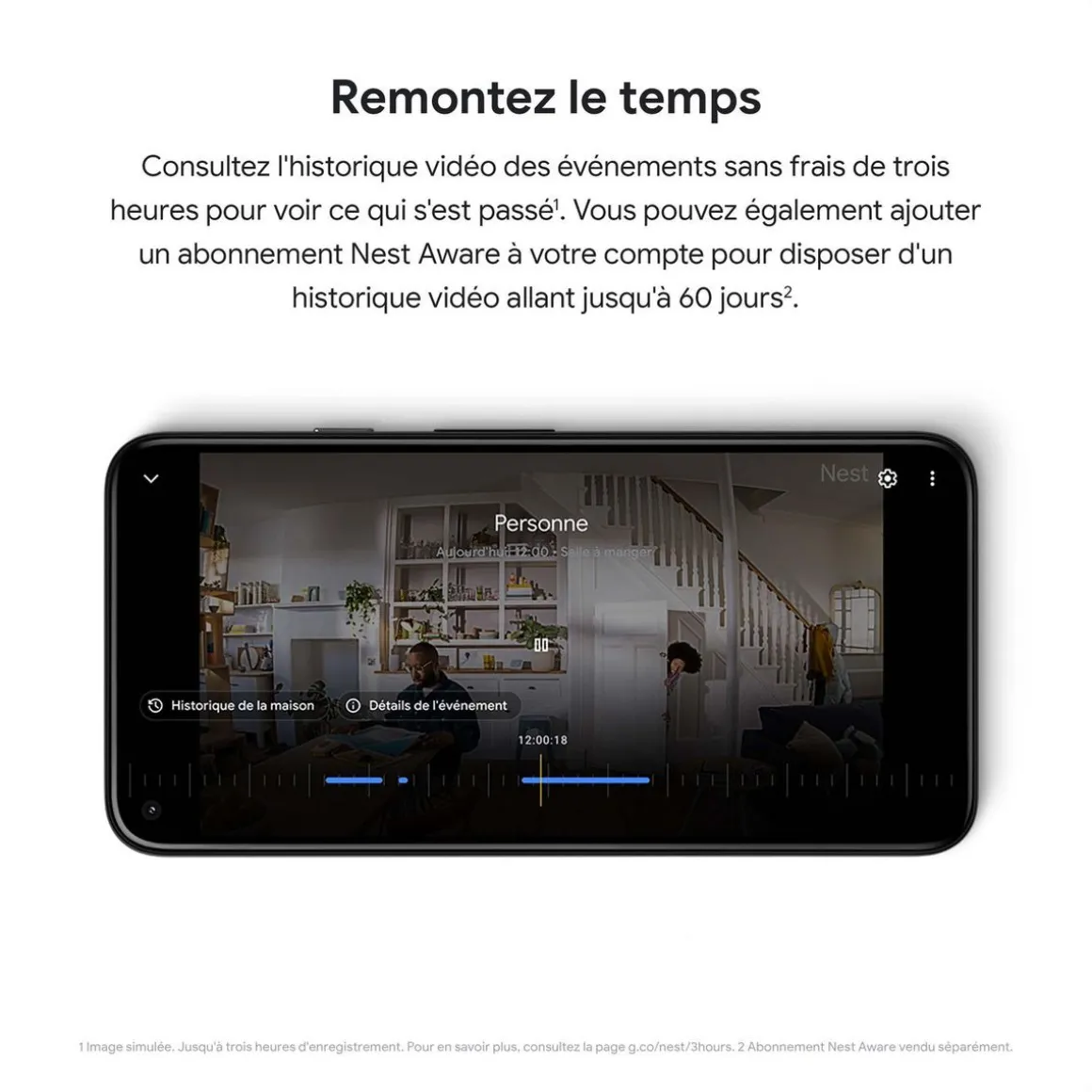 La caméra Nest intérieure avec Fil de Google sait faire la différence entre les personnes, les animaux et les véhicules, et vous envoie uniquement les alertes pertinentes. Grâce à la vidéo en direct 24h/24, 7j/7, regardez ce qui se passe chez vous, où que vous soyez, via l’application Google Home.