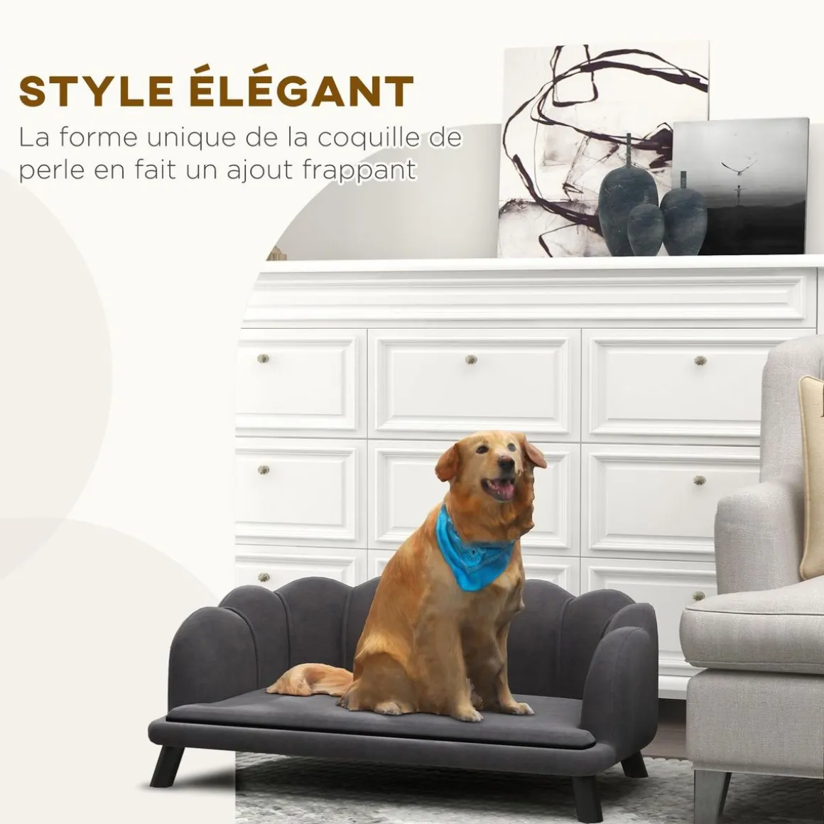 – Lit canapé chiens ou chats design contemporain coquillage : idéal pour ajouter une touche d’originalité et de raffinement supplémentaire à votre intérieur