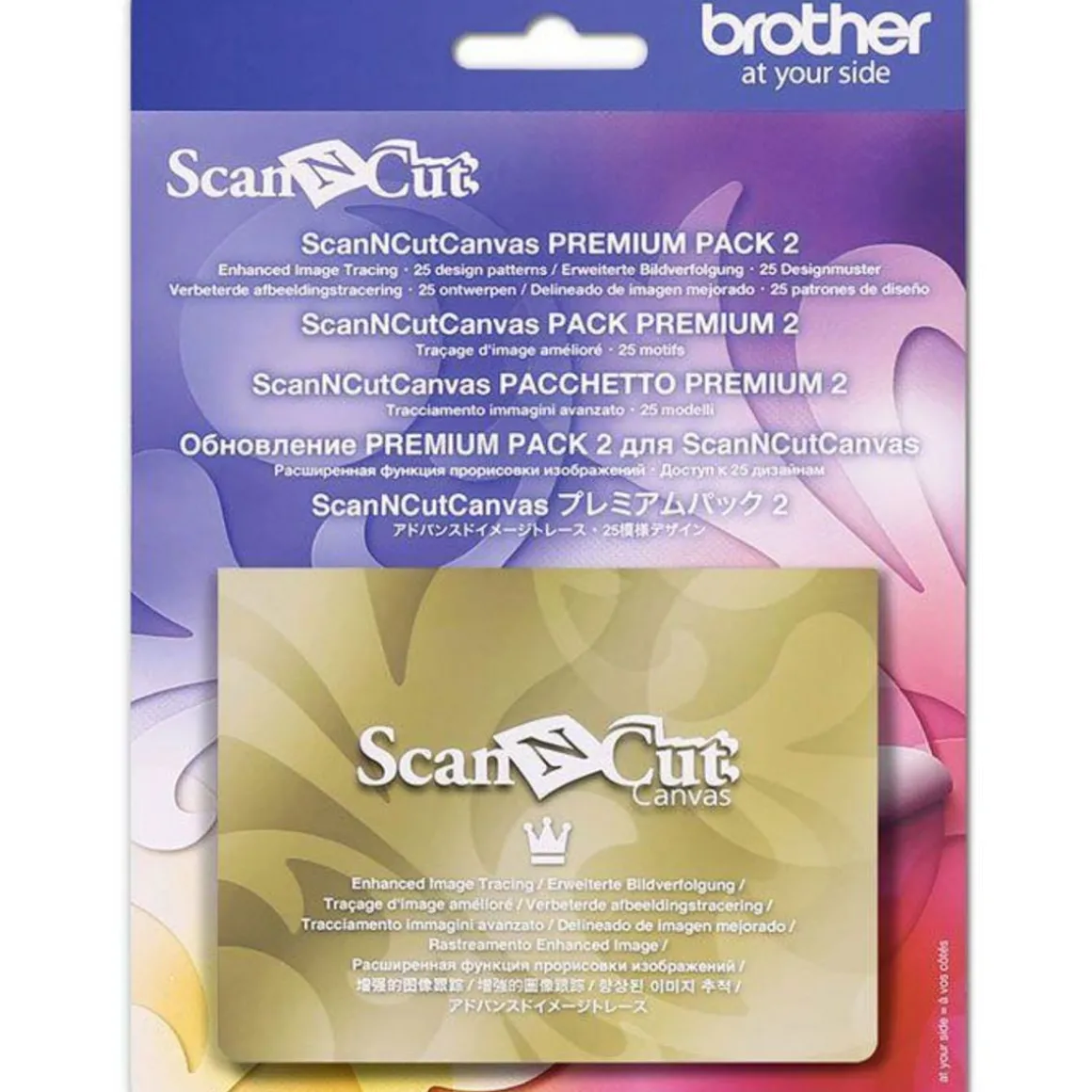 Pack ScanNCut Canvas Premium 2 à utiliser avec la machine de découpe avec scanner intégré ScanNCut Brother (vendue séparément). Ce pack comprend : une carte d’activation pour la fonction traçage amélioré des images, une carte d’activation pour 25 motifs.