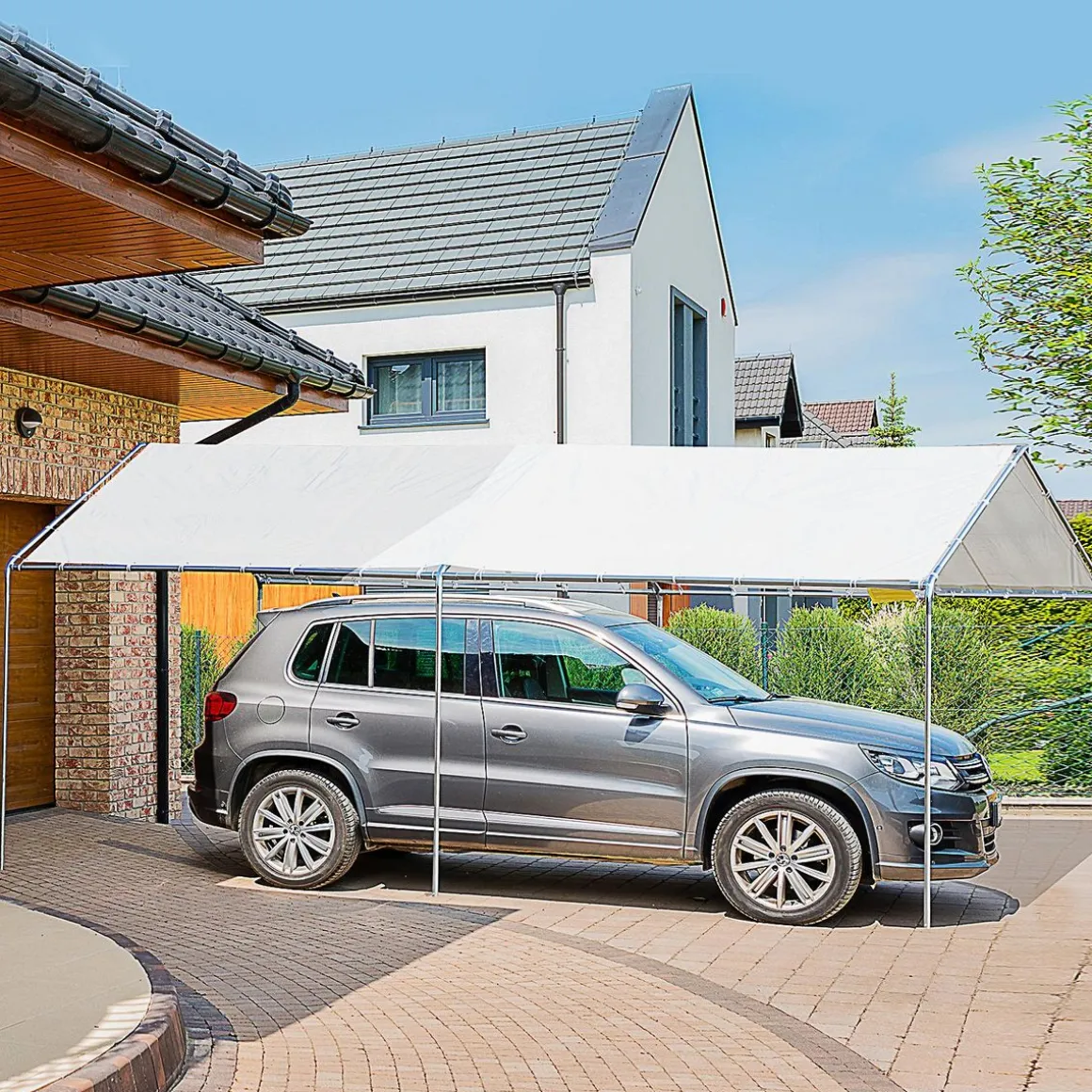 – Carport XXL très élégant avec toit à double pans