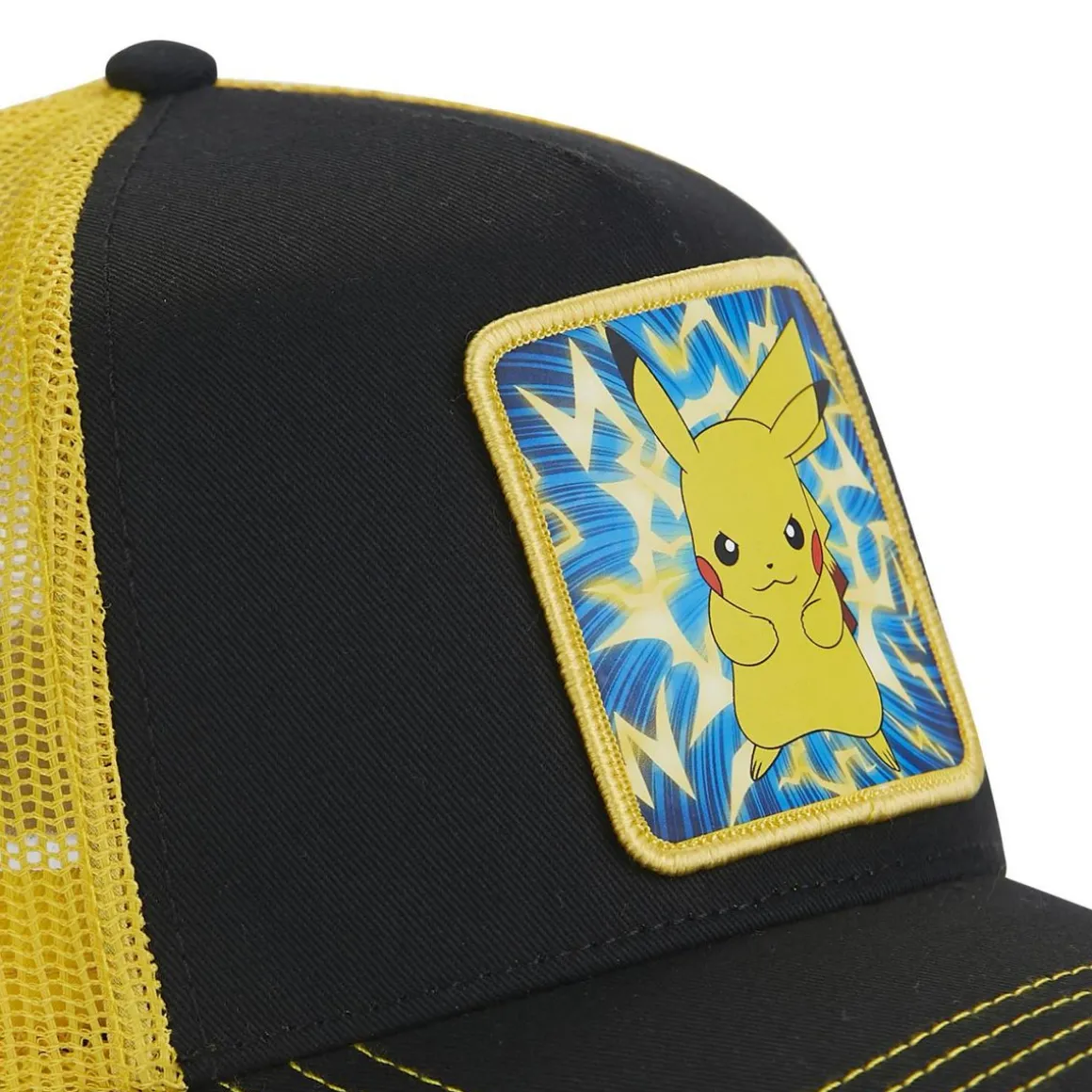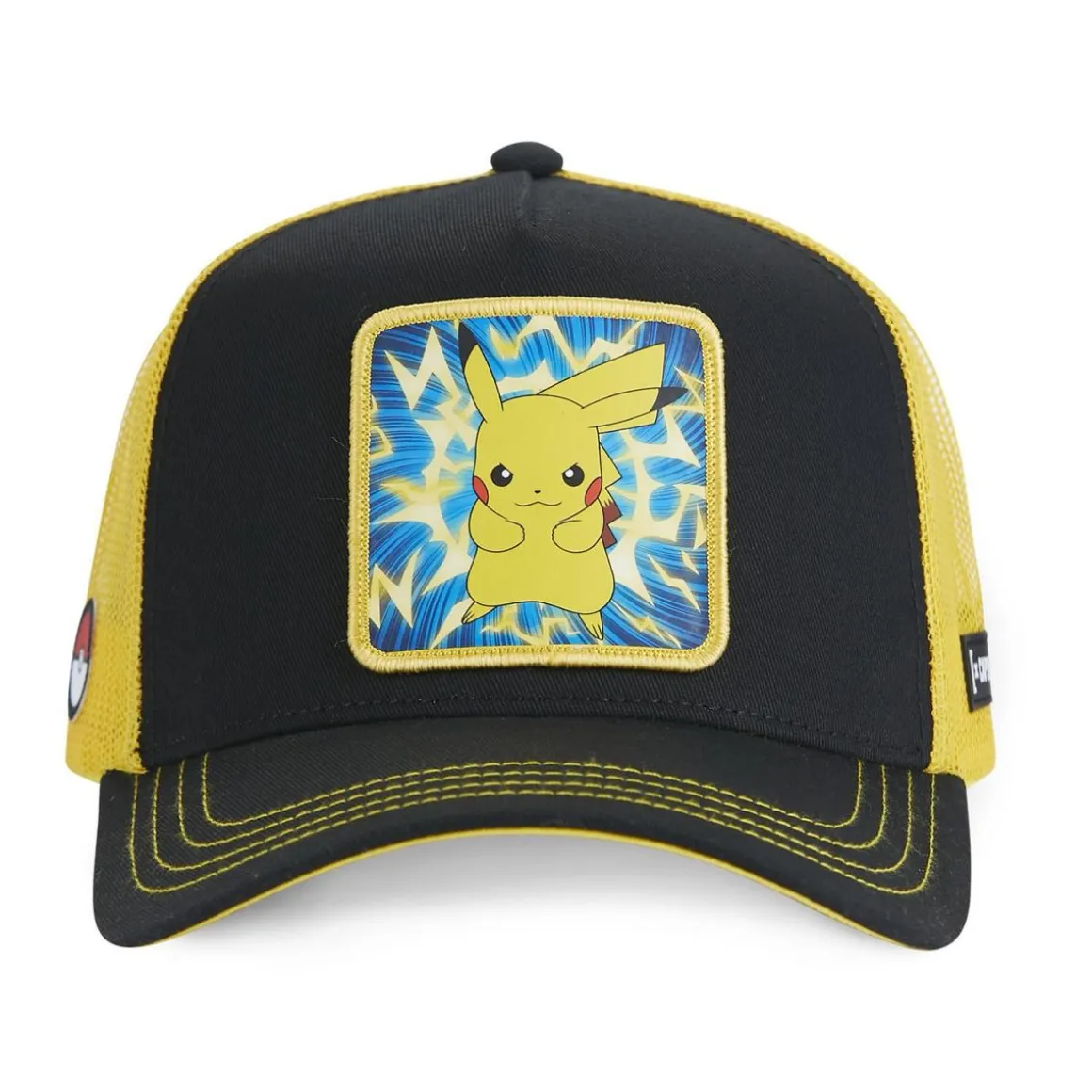 Nouvelles casquettes [X] Capslab Pokémon ! La marque vous propose une nouvelle collection de casquette avec un patch à l’effigie de Pikachu. Opte pour une casquette [X] Capslab trucker Pikachu au style moderne et unique ! Avec un une casquette [X] Capslab à tes côtés tu vas pouvoir te démarquer des autres. Disponible en taille unique, ajustable par snapback à l’arrière, cette casquette Pokémon s’ajuste parfaitement au tour de tête de 55,5 cm à 60 cm.