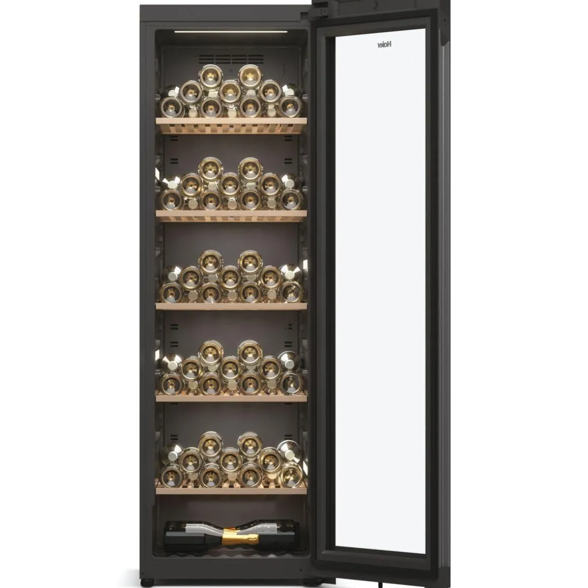 | Type de porte | vitrée, permet de visualiser facilement les bouteilles sans avoir à ouvrir la porte, ce qui réduit la circulation de l’air dans la cave et donc la variation de la température. Le traitement anti-uv protège le contenu. | |