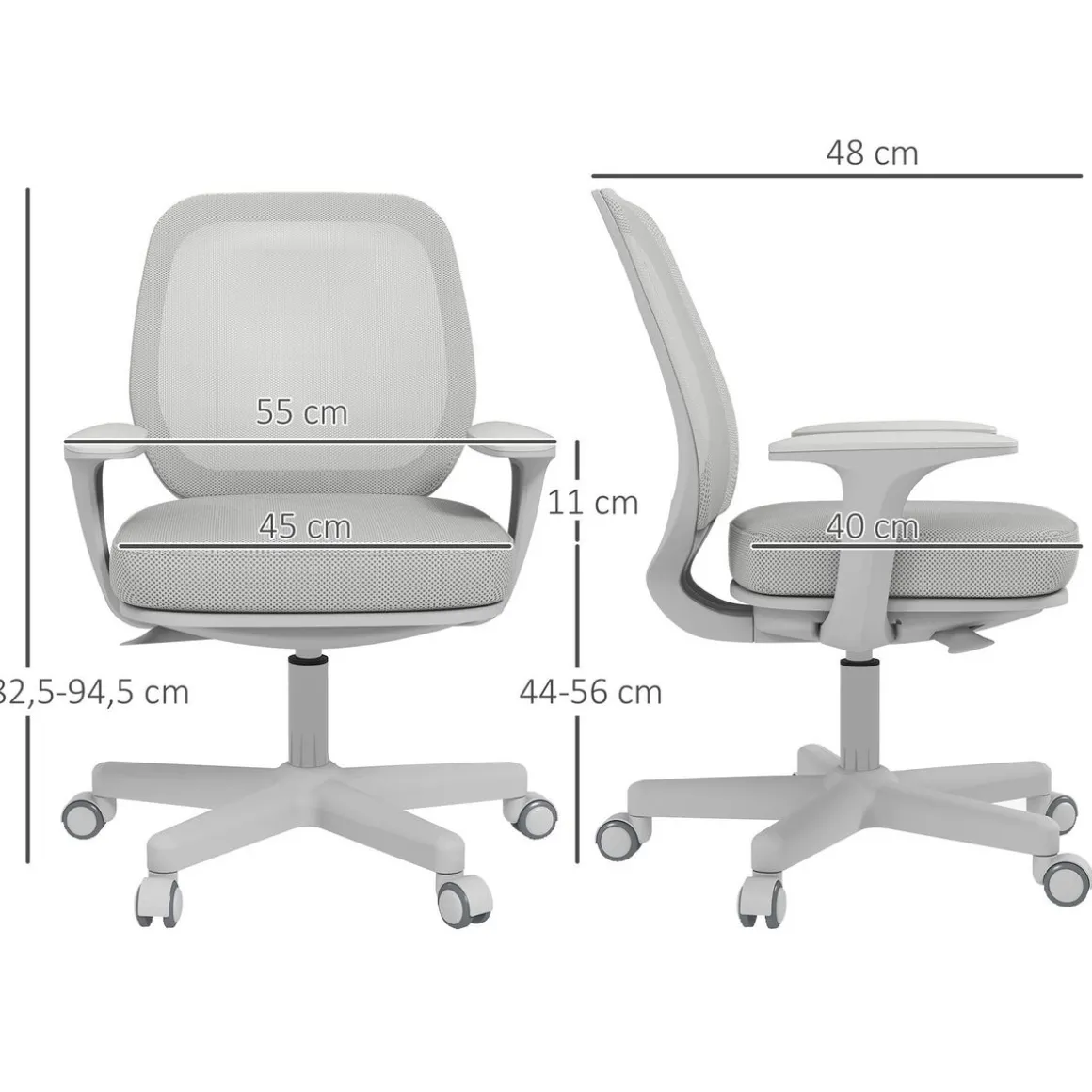 – Dim. totales : 55L x 48l x 82,5-94,5H cm