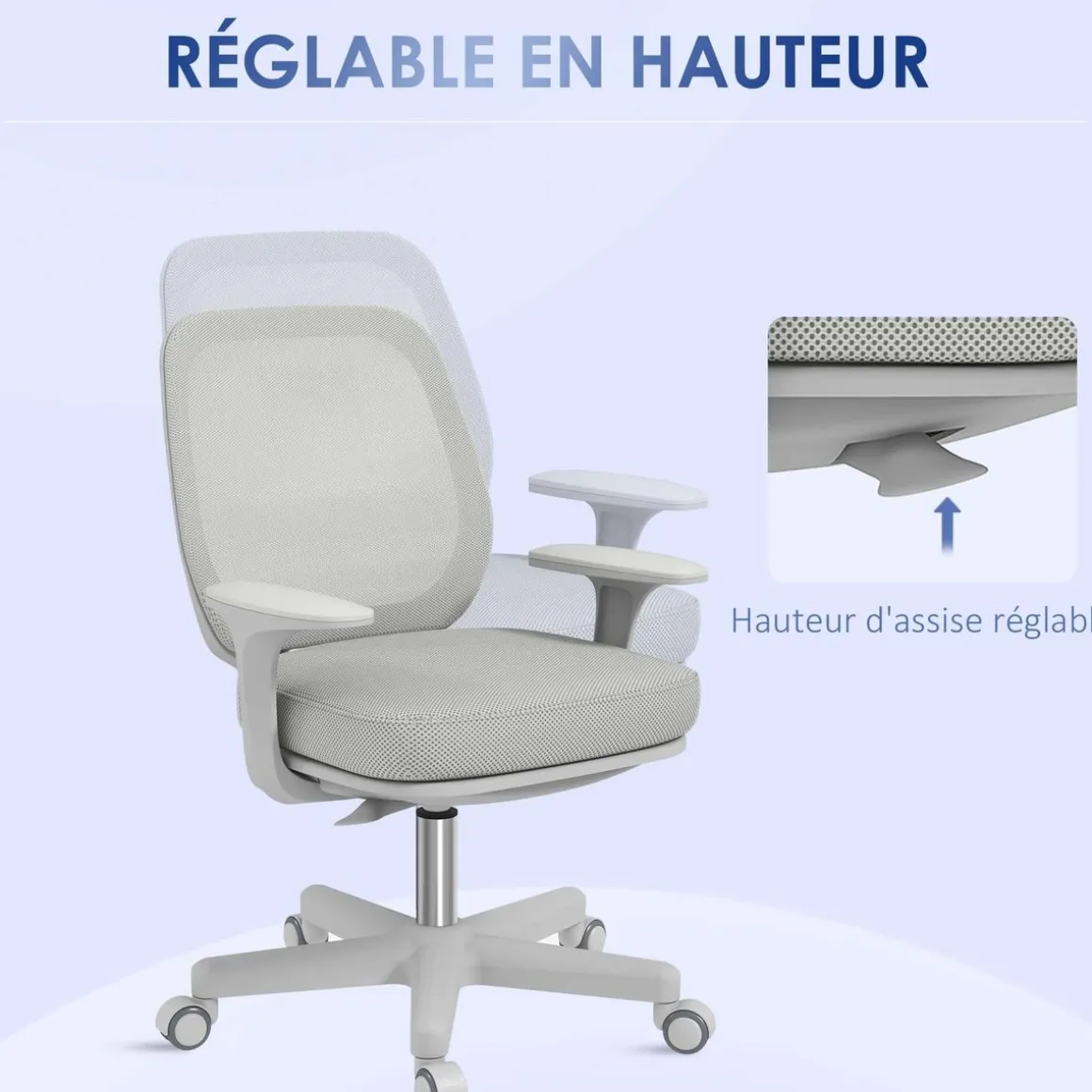 – Fauteuil pivotant à 360° et 5 roulettes multidirectionnelles : mobilité accrue au bureau