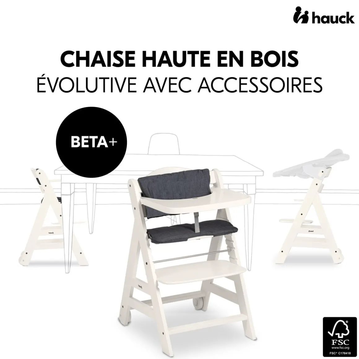 La chaise haute Beta+ est fabriquée en bois de hêtre européen provenant de forêts certifiées FSC® qui accordent une grande importance à une exploitation durable et écologique afin de protéger les plantes et les animaux. Grâce à la construction stable, au roues et aux glissières de sol, la Beta+ est inversable. L’assise et le repose-pieds réglables s’adaptent à la taille de votre enfant, lui offrant une position confortable à tout âge. Avec une charge maximale de 90 kg, la Beta+ est votre compagnon fiable au long de la vie.