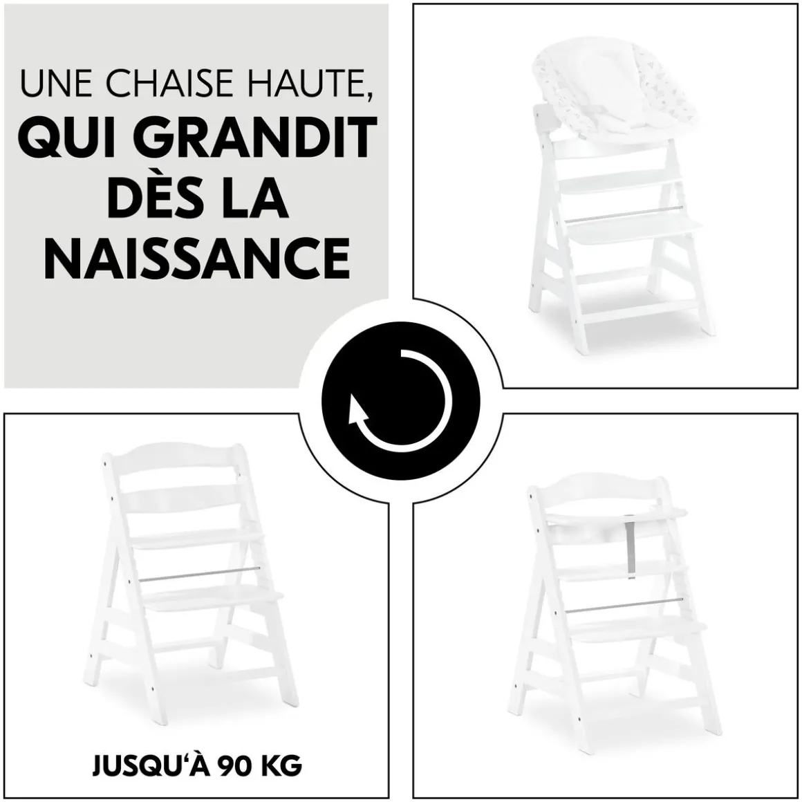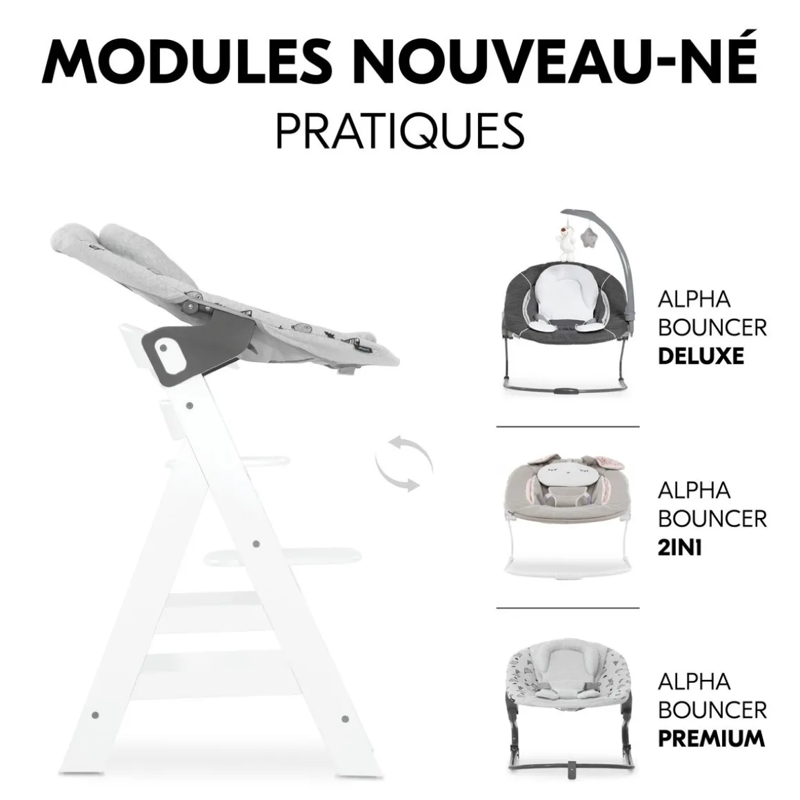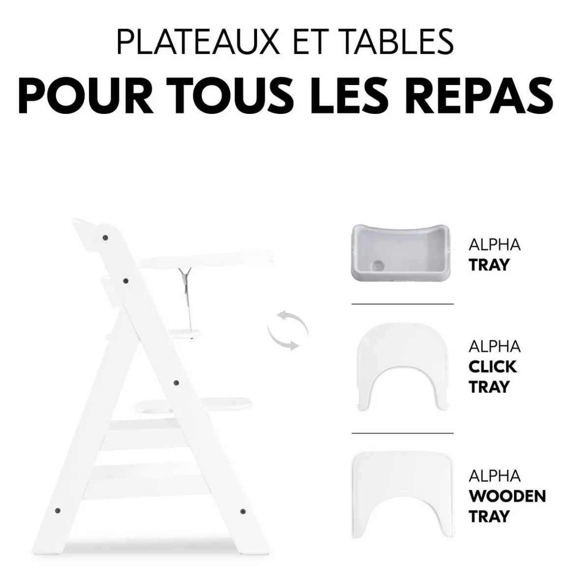 Chaises hautes Alpha+B Blanc + Accessoires de chaise haute en bois Alpha Wooden Tray Charcoal