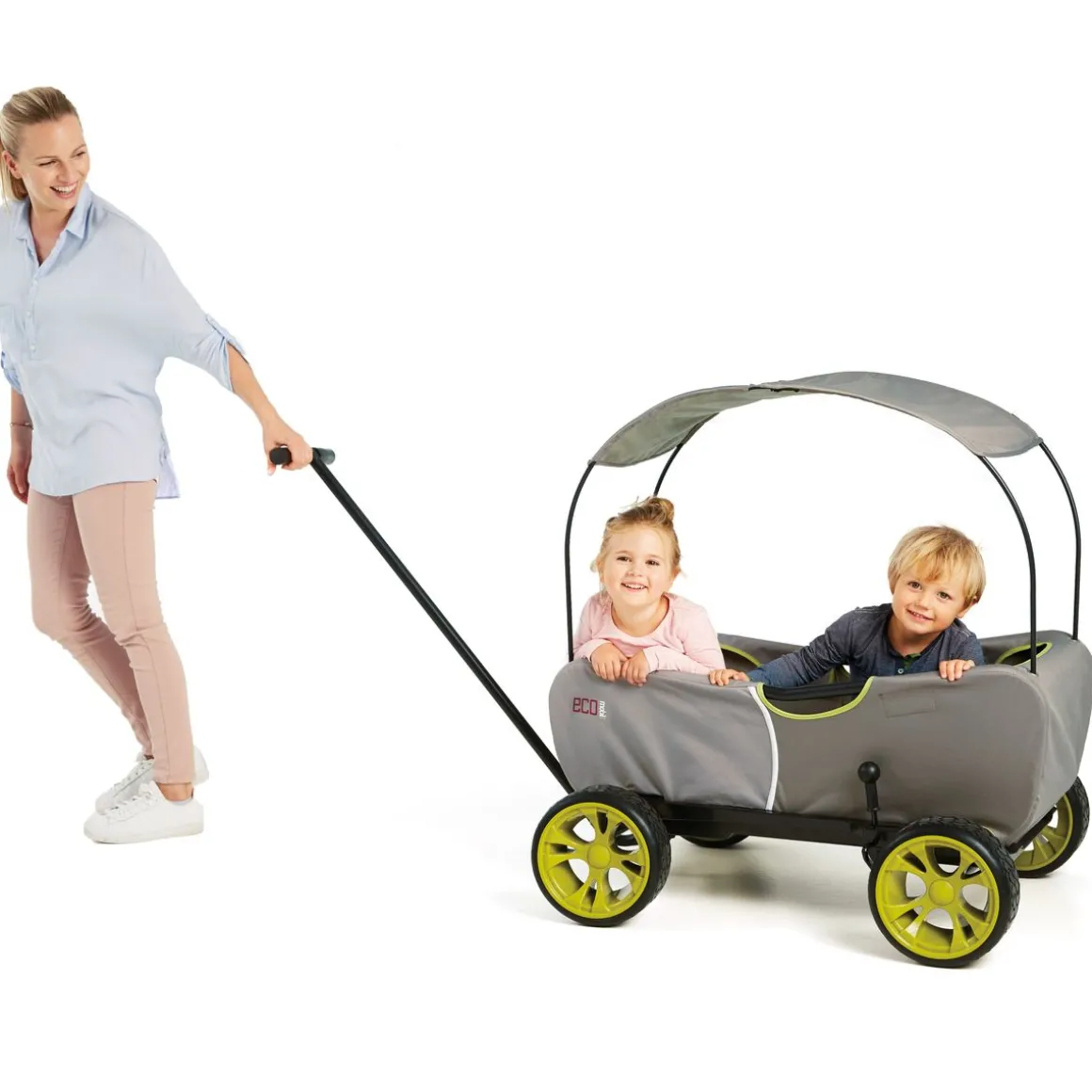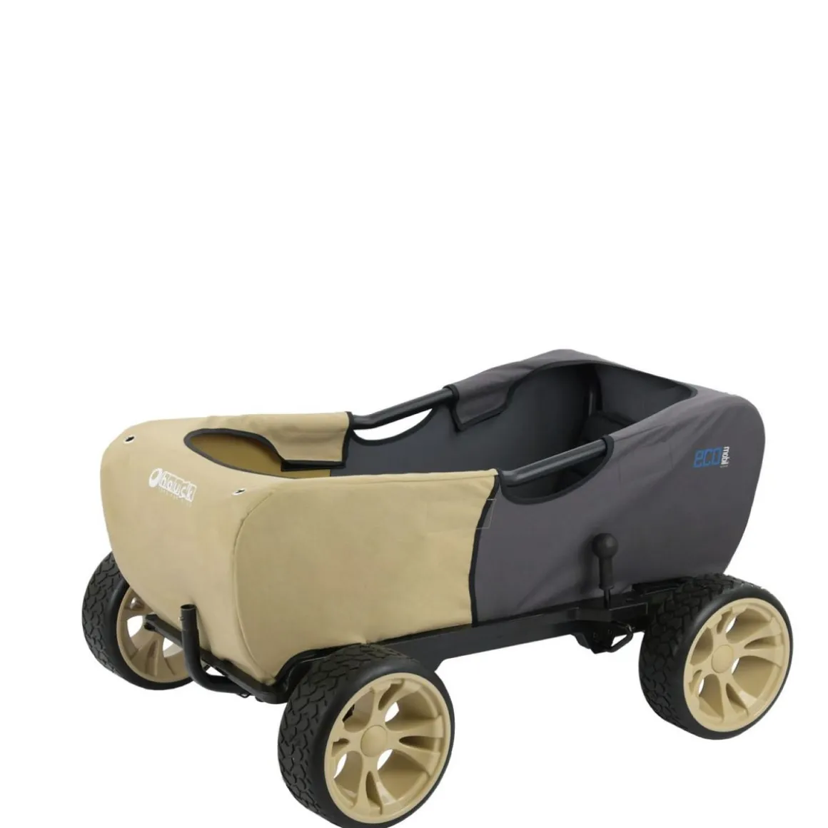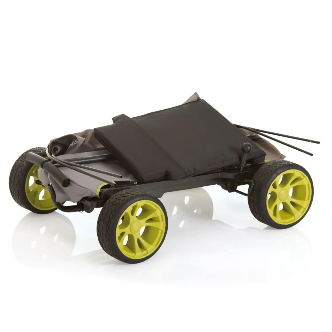 La charrette à bras Eco Mobil de hauck est un véhicule de transport multifonctionnel. La construction en tube d’acier est robuste, le fond en plastique profilé et le matériau solide permet une capacité de charge maximale de 50 kg. Grâce aux larges dimensions, à la grande protection solaire et aux deux coussins d’assis, le chariot à tirer convient pour le transport de deux enfant à partir de 2 ans. Le centre de gravité bas permet une stabilité supérieure. Grâce aux côtés légèrement plus bas ainsi qu’aux poignée, les filles et les garçon peuvent facilement entrer et sortir de la charrette à pousser. Le frein de stationnement empêche qu’elle puisse rouler sur les pentes obliques. Ainsi, l’Eco Mobile se replie facilement et de façon compact pour un rangement et un transport aisé. Points forts : châssis robuste en tube d’acier, fond solide, centre de gravité bas, roues EVA 10″ »Ø 25,5 cm, roues arrière amovibles, pliable, tige suspendue amovible, deux coussins d’assise pour deux enfant à partir de 2 ans, capote pare-soleil, poids 16,5 kg, dimensions avec tige (L/l/H) 124 x 75 x 110 cm, dimensions sans tige (L/l/H) 97 x 75 x 100 cm, dimensions plié (L/l/H) 97 x 75 x 34 cm, capacité de charge maximale 50 kg.