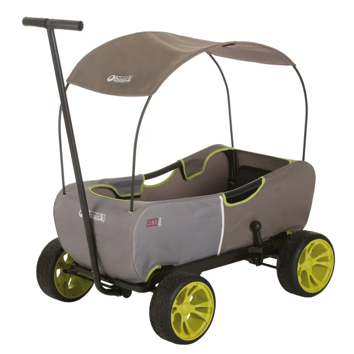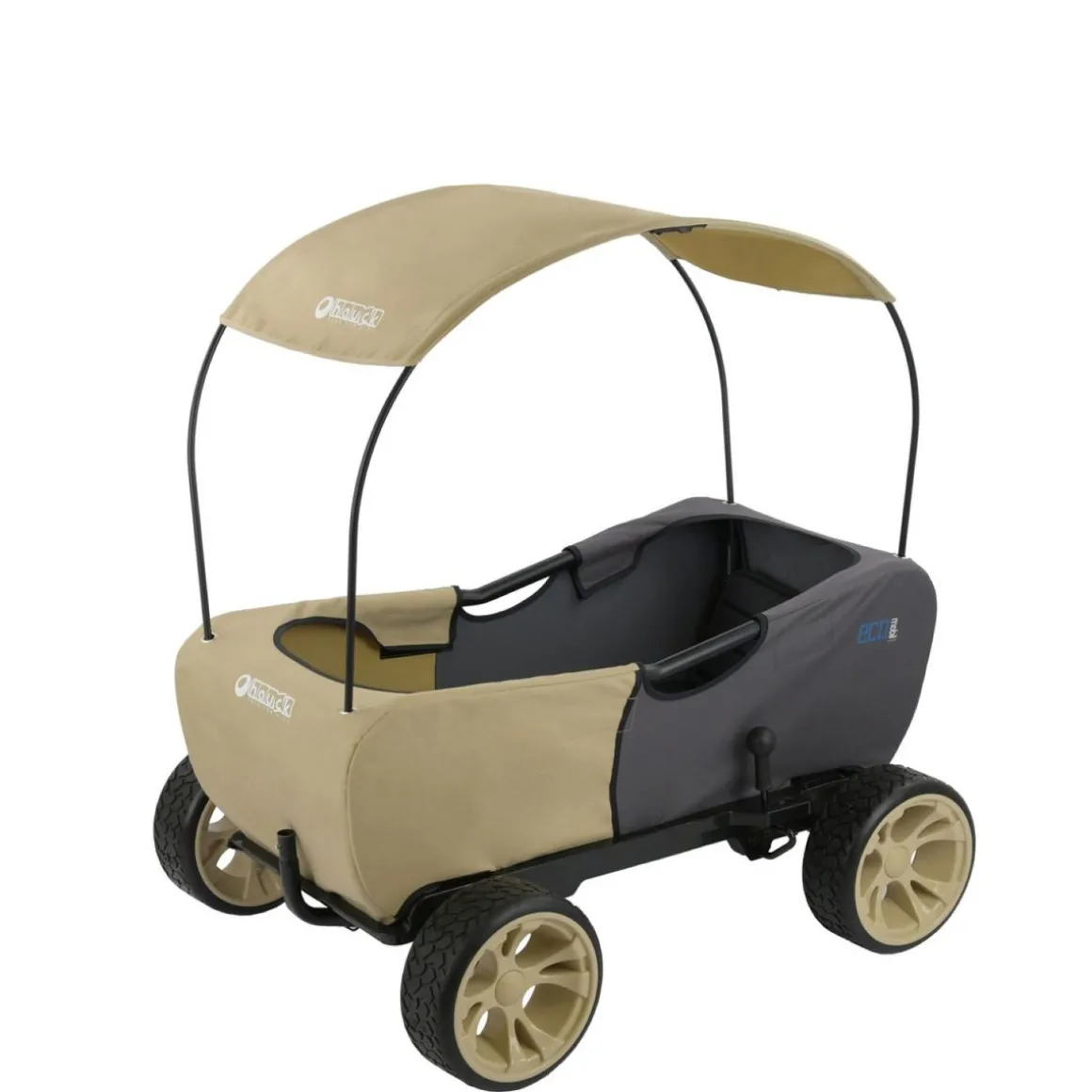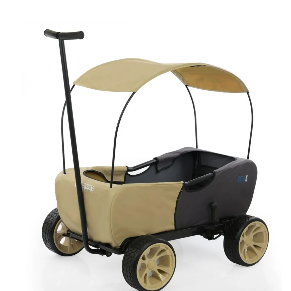 La charrette à bras Eco Mobil de hauck est un véhicule de transport multifonctionnel. La construction en tube d’acier est robuste, le fond en plastique profilé et le matériau solide permet une capacité de charge maximale de 50 kg. Grâce aux larges dimensions, à la grande protection solaire et aux deux coussins d’assis, le chariot à tirer convient pour le transport de deux enfant à partir de 2 ans. Le centre de gravité bas permet une stabilité supérieure. Grâce aux côtés légèrement plus bas ainsi qu’aux poignée, les filles et les garçon peuvent facilement entrer et sortir de la charrette à pousser. Le frein de stationnement empêche qu’elle puisse rouler sur les pentes obliques. Ainsi, l’Eco Mobile se replie facilement et de façon compact pour un rangement et un transport aisé. Points forts : châssis robuste en tube d’acier, fond solide, centre de gravité bas, roues EVA 10″ »Ø 25,5 cm, roues arrière amovibles, pliable, tige suspendue amovible, deux coussins d’assise pour deux enfant à partir de 2 ans, capote pare-soleil, poids 16,5 kg, dimensions avec tige (L/l/H) 124 x 75 x 110 cm, dimensions sans tige (L/l/H) 97 x 75 x 100 cm, dimensions plié (L/l/H) 97 x 75 x 34 cm, capacité de charge maximale 50 kg.