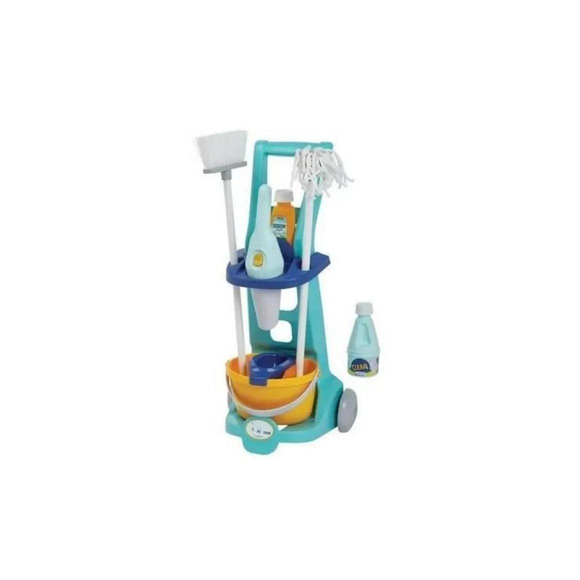 Un chariot regroupant tous les accessoires nécessaires pour une maison impeccable : un balai espagnol avec son seau équipé d’une essoreuse, un balai, un aspirateur a main et 2 flacons de produits ménagers. 8 pieces Des 36 mois. Origine France Garantie
