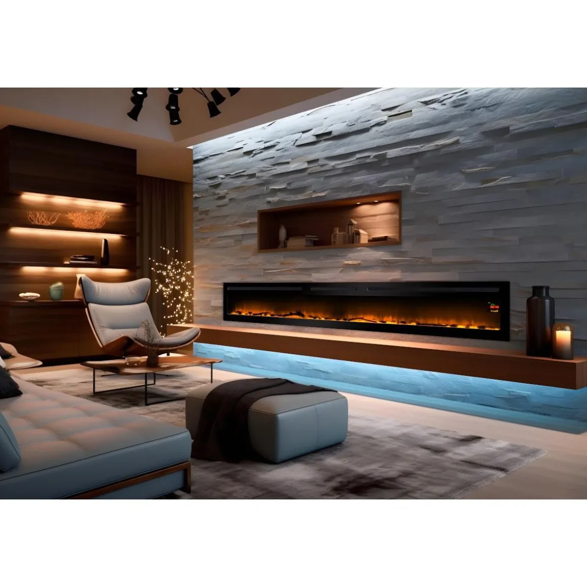 Possibilité d’intégrer des accessoires des décoration (buches, cristaux rouges,?). Vendus en option