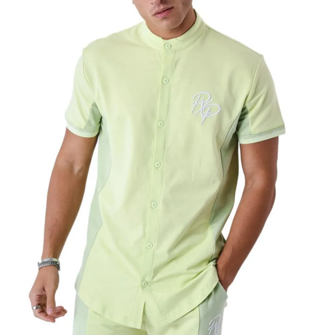 Optez pour cette chemise de la marque Project X ParisColoris : VertCol maoCoposition : 65%Coton,30%Polyester,5%ÉlasthanneFnition manche elastique printe project x parisChemise manche courte bicolore