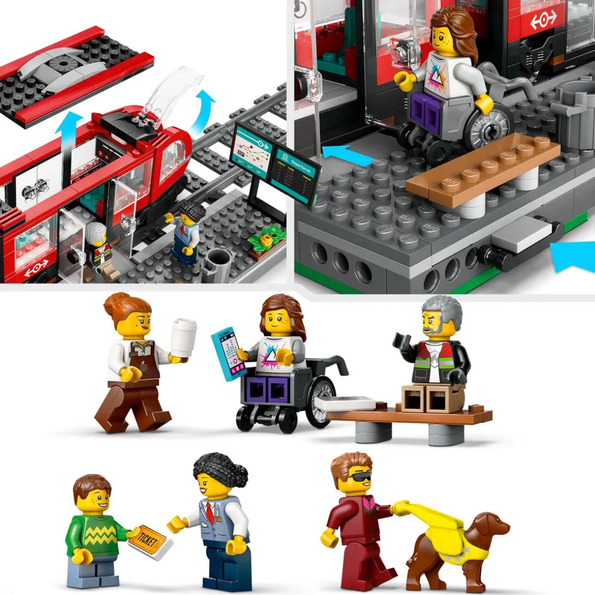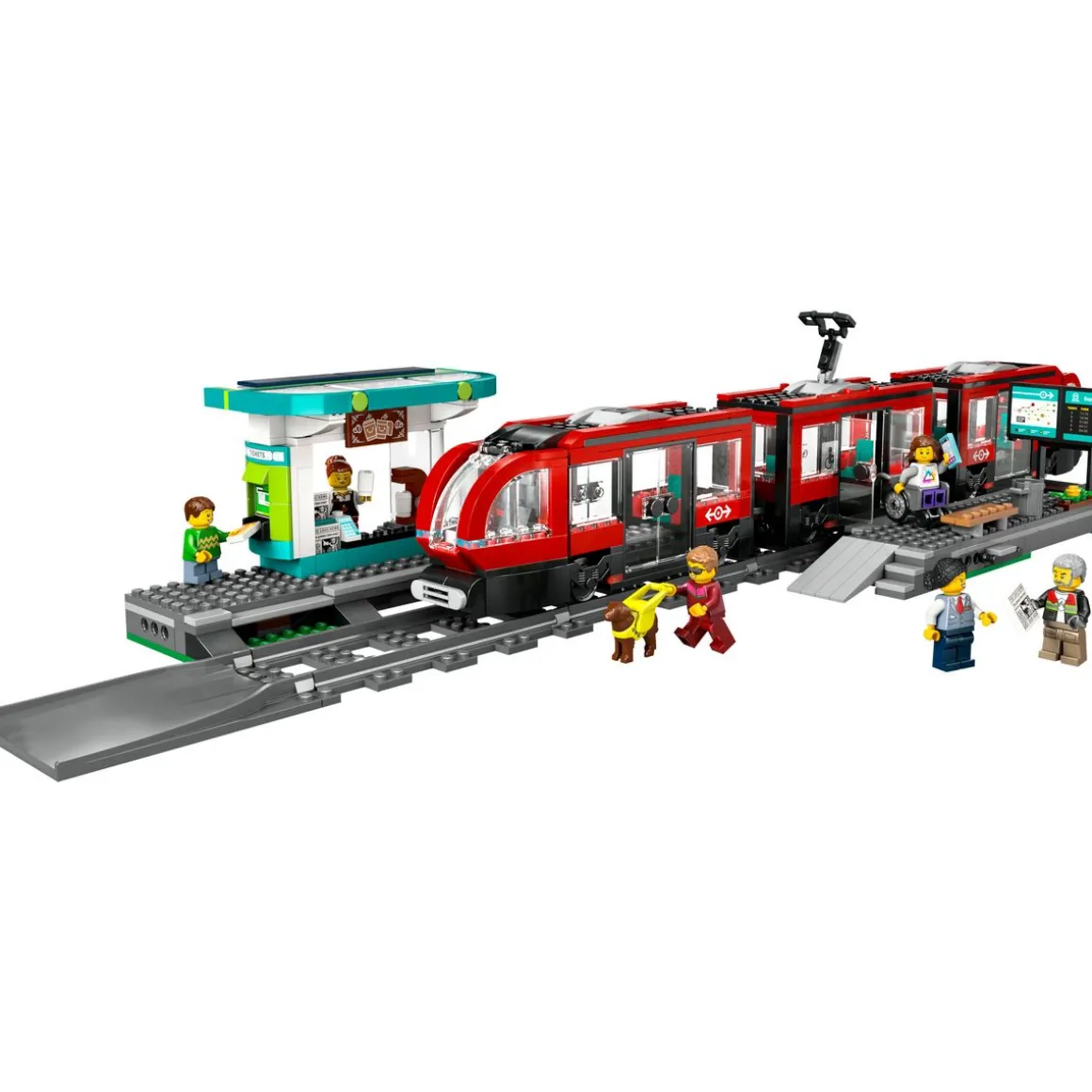 Faites le bonheur des fans de trains miniatures avec ce set LEGO® City incluant un tramway moderne, une station, 6 minifigurines et un chien-guide.