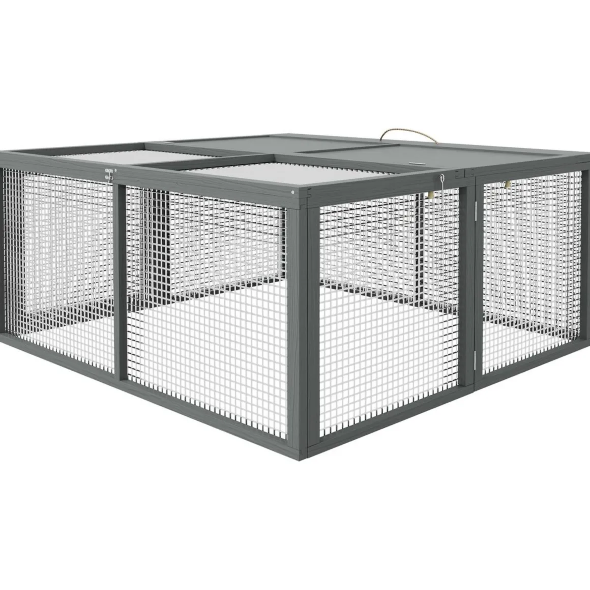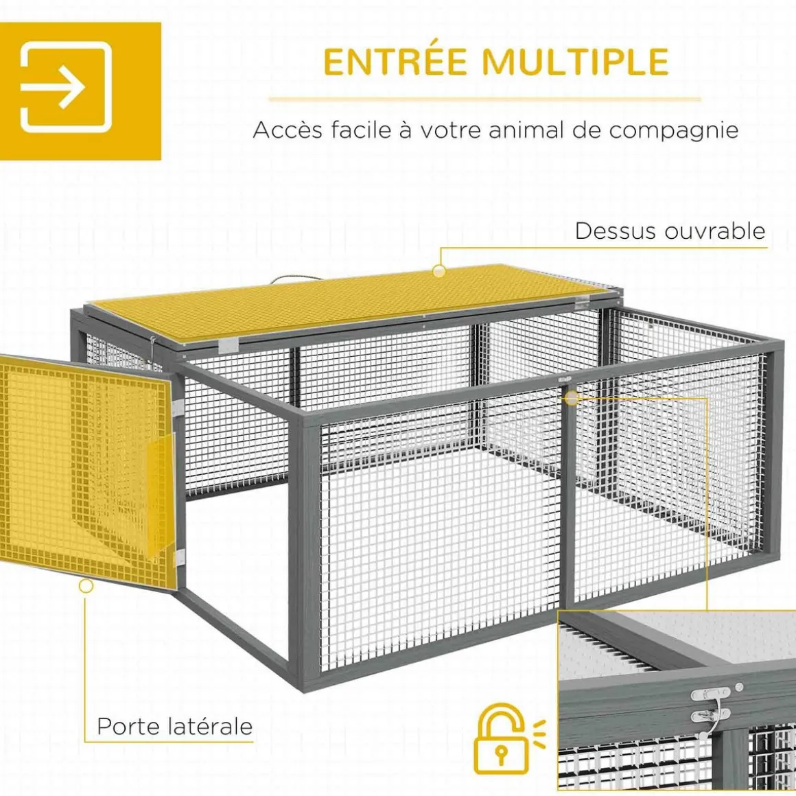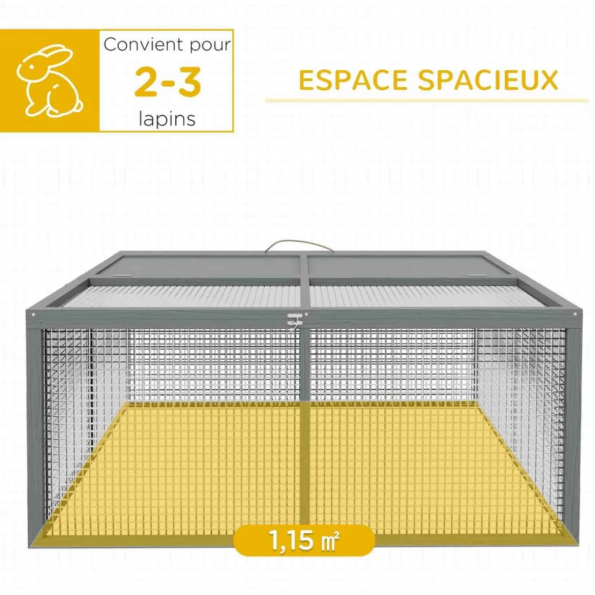 – Cet enclos à lapin extérieur est construit en bois massif et en acier