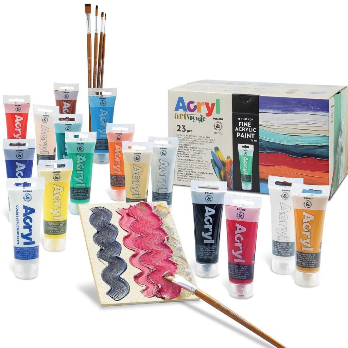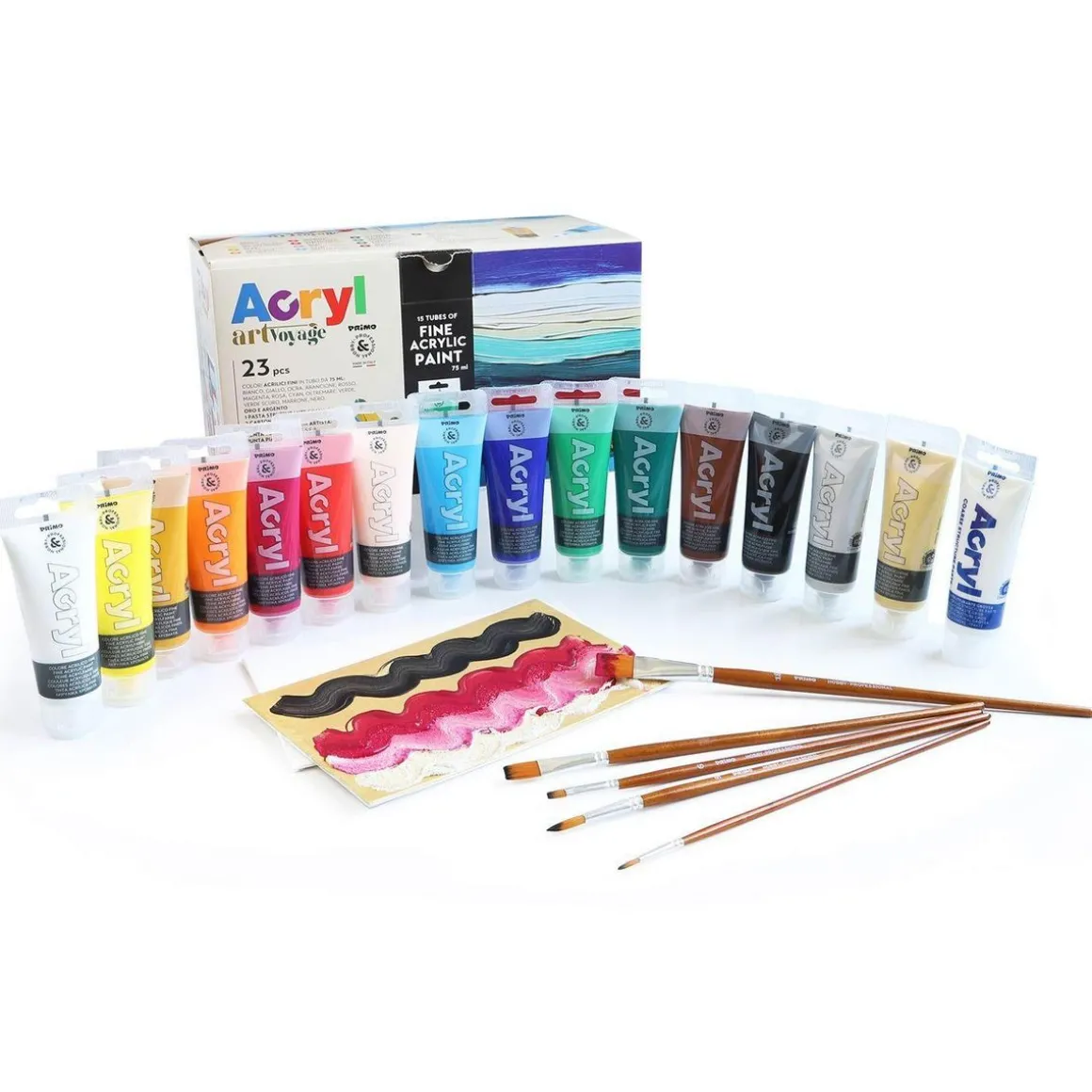 Coffret 16 peintures acrylique et accessoires