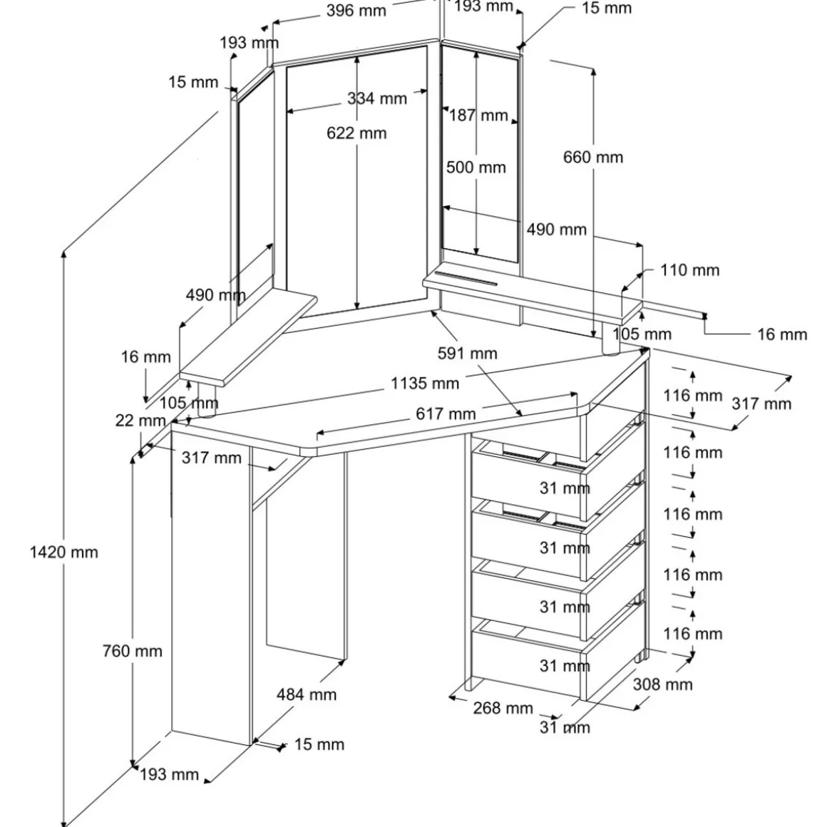 Desserte beauté sur roulettes GLAMY référence CA1016950.