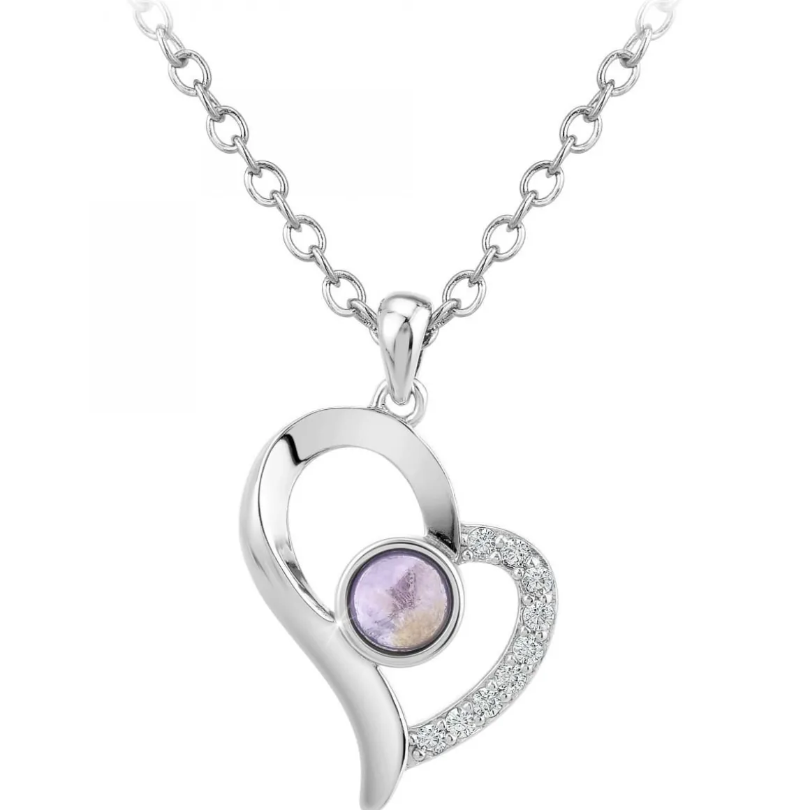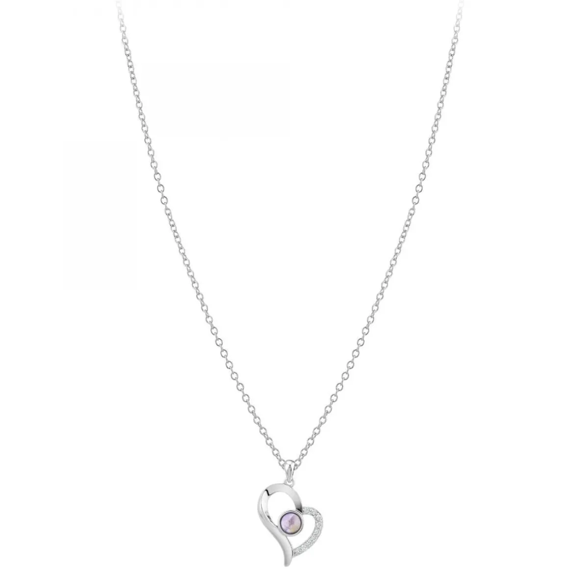 Collier cœur SC Crystal orné de Zirconium et d’une pierre améthyste