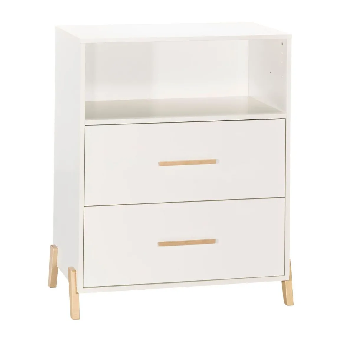 – 2 joues du dispositif à langer en panneaux de fibres de moyenne densité (MDF) laquées blanc.