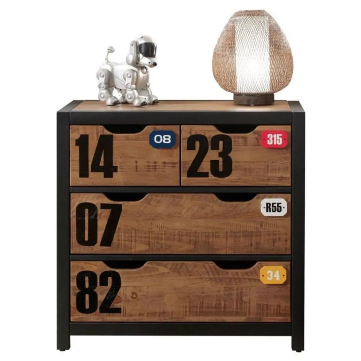 Chiffonnier Nuit 4 tiroirs Jade dans les tiroirs Anthracite, 46 cm Longueur