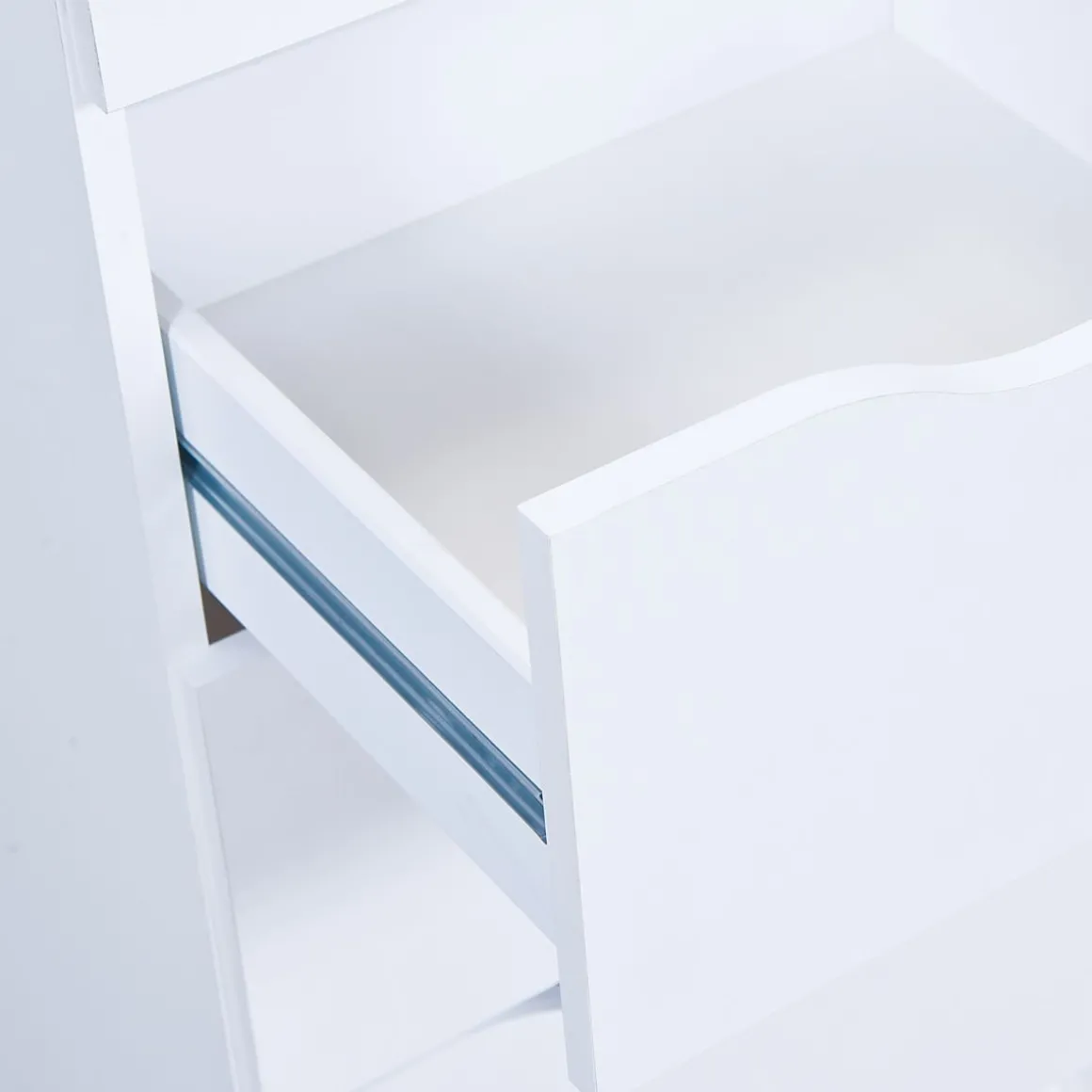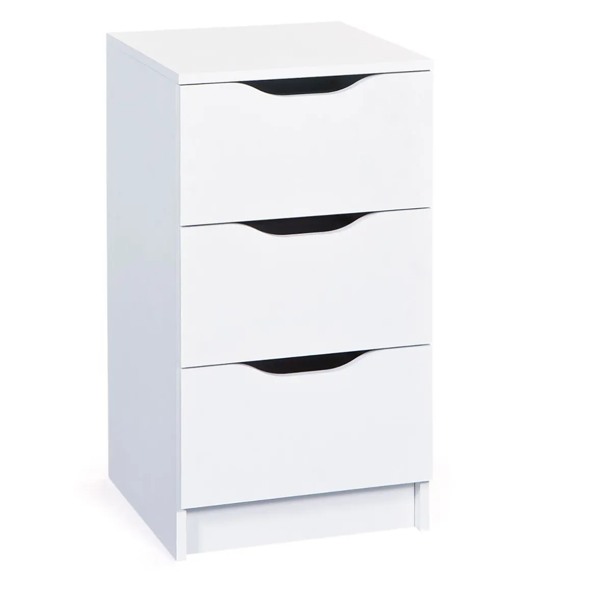 La gamme Falone est composée de plusieurs commodes en panneaux de particules mélaminé robuste blanc. Entretien facile et durable. Encoches pratiques à l’avant du tiroir. Avec 3 tiroirs coulissants.